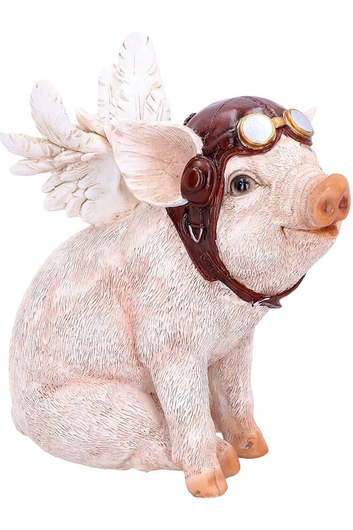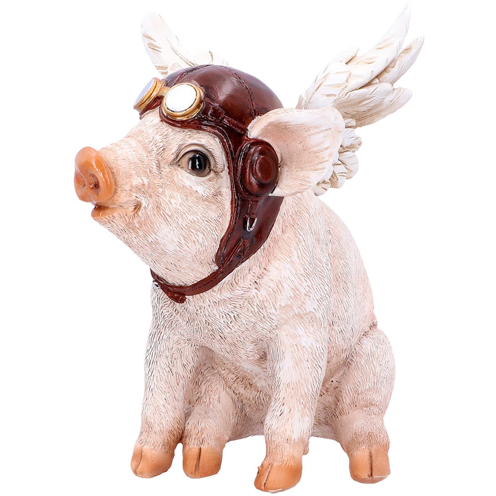 Pigs can fly! This adorable pig proves that stereotyping is wrong! Complete with aviator goggles and feathered wings, this little piggy will be able to fly to market! Cast in the finest resin before being finished in bronze and hand-painted, he would make the perfect addition to any quirky collection.