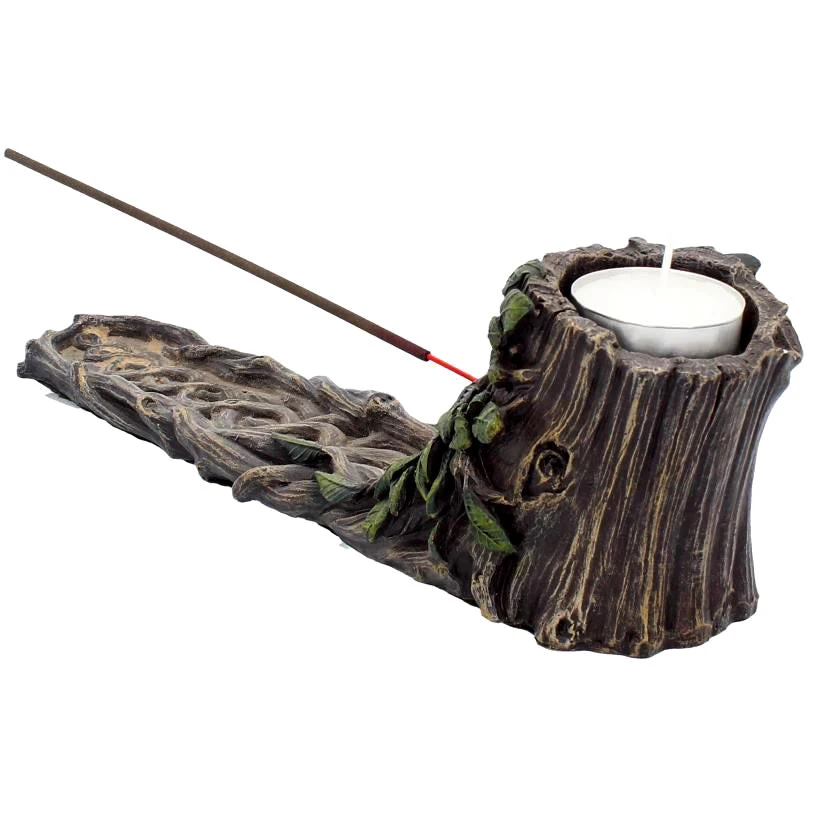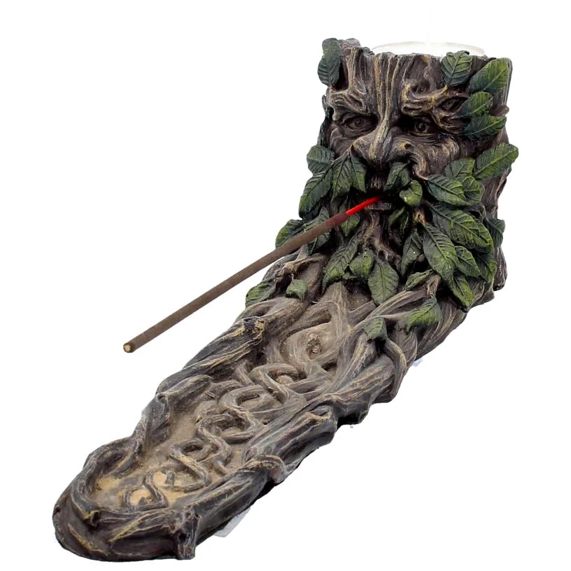 An incense stick can be placed in the mouth of the Tree Man, where it will happily and safely release its beautiful aroma. The design is very intricate and shows branches entwining to form the length of the holder. His face is formed from the bark and has small leaves forming his eyebrows and facial hair, as well as space in the top of his head to place a small tealight. Cast in high-quality resin before being painstakingly hand-painted, this piece brings a little bit of nature into your home.