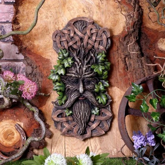 Show your love for ancient shepherds of the forest with Yashem, a wall mounted tree spirit. A wise old face sits within the deep tree roots, with lush green leaves poking out and knots of celtic patterns above and below. Cast in the finest resin before being expertly hand-painted, this piece will bring nature, magic and mystery into any home.