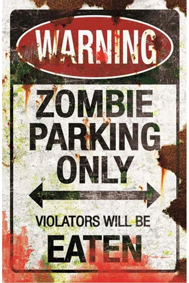 Gothic Metal Wall Sign, Zombie Parking Sign 43cm.