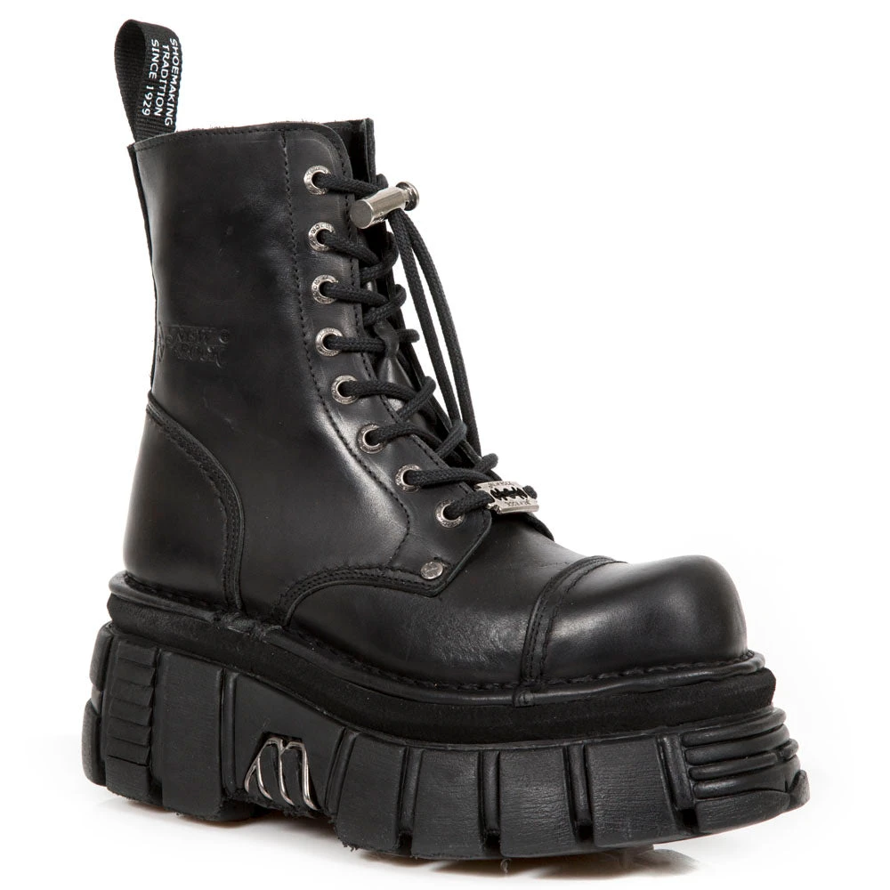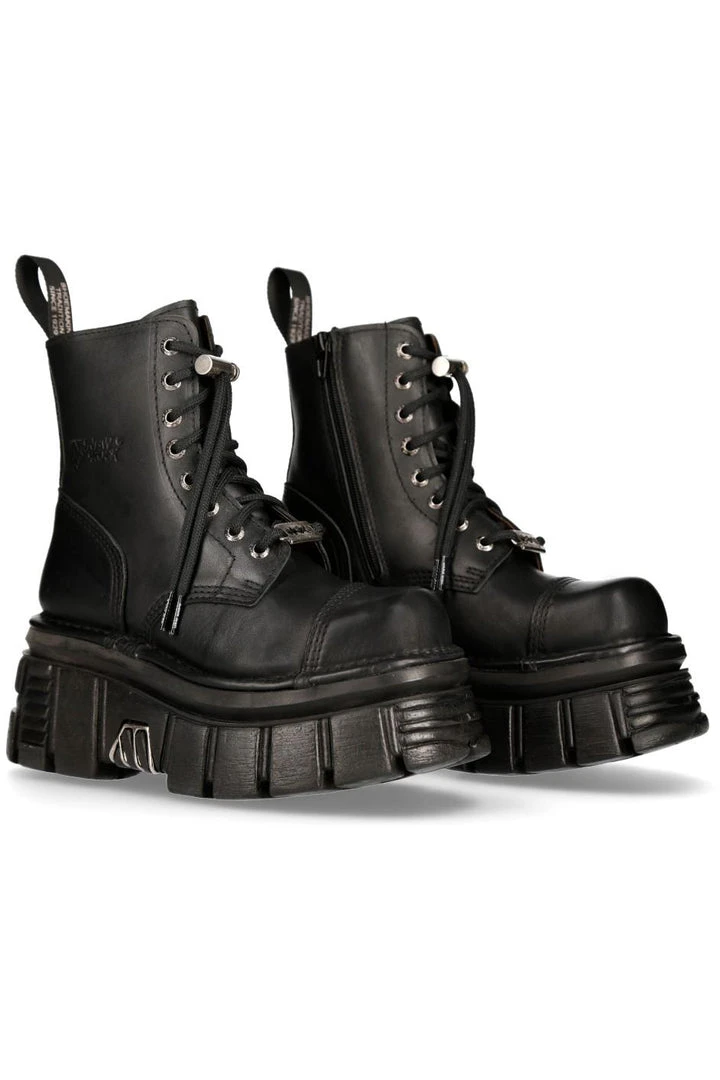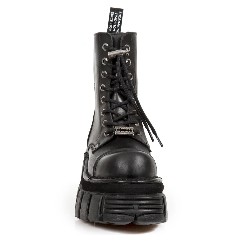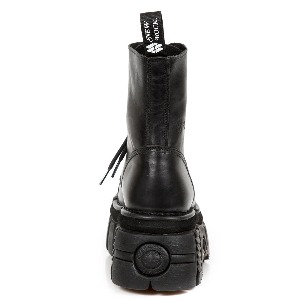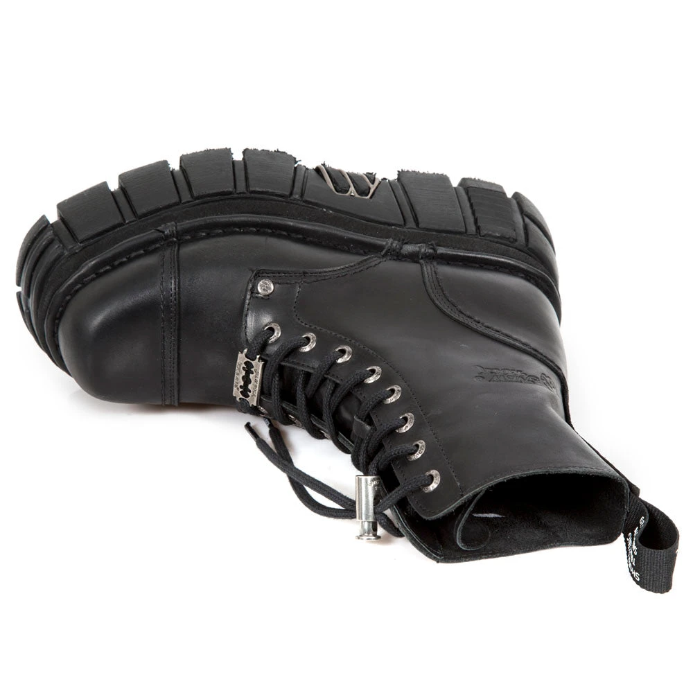New Rock Black Combat Boots M.NEWMILI083-S21. Unisex. Female and Male sizes in stock.