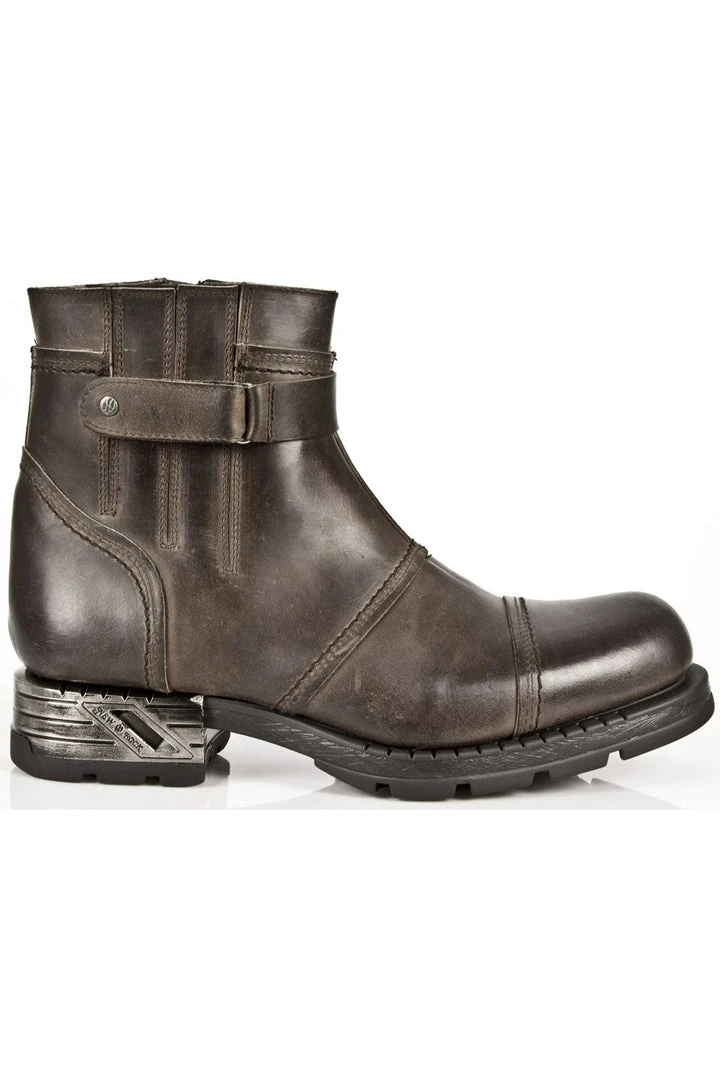 New Rock Alaska Camel M.MR013 Brown Motorock Boots M.MR013-S2. Leather. Unisex. Side Elastic Panel and a Zip for easy fit. Decorated with a brown boot strap and metal heel. Unisex. Part of the Motorock Collection.