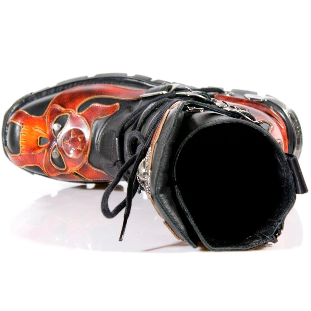 Metallic collection with Reactor sole. They are decorated with flames in red. 4 buckles, laces and zippers. Decorated with a Red Demon Skull and Pentagram