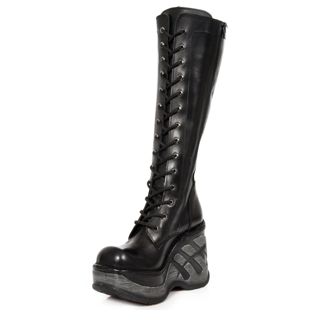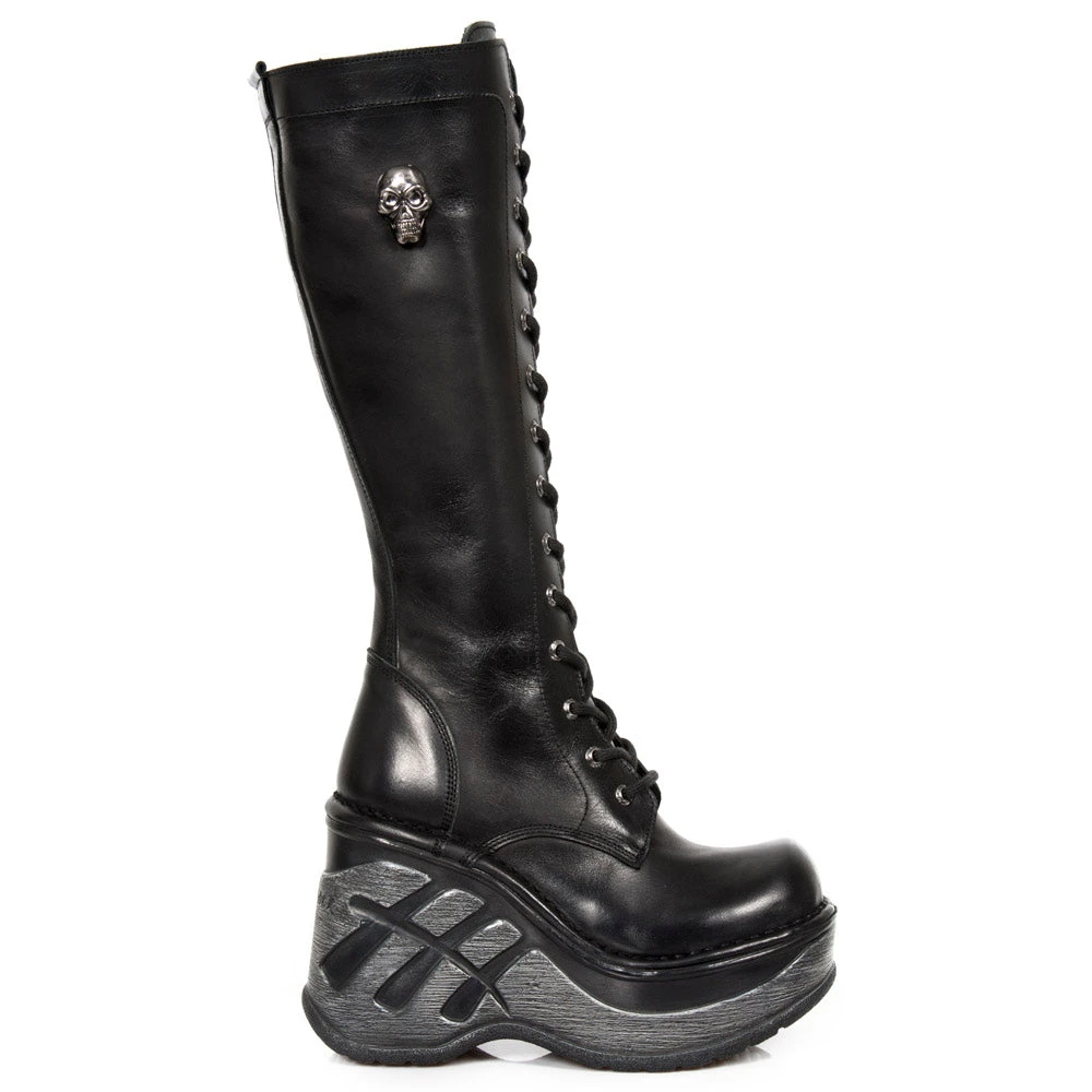 New Rock M.SP9811 Lace-Up Neo Cuna Sport Boots M.SP9811-S1. Leather. Neo Cuna Sports Heel. Laced. Side Zip. Skull Motif on side. Part of the New Cuna Sports Collection.