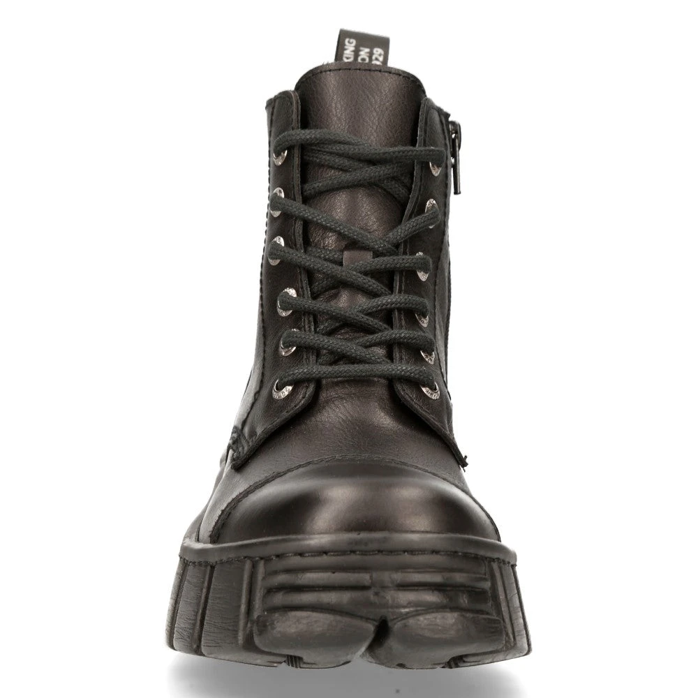 Black New Rock Boots. Laced with Inside zip. Unisex. Out of stock sizes can be custom ordered. Simply contact us for details.
