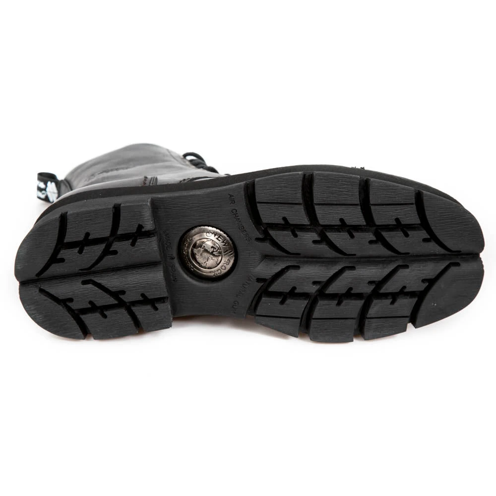 New Rock Black Combat Boots M.NEWMILI083-S14. Leather. Unisex.