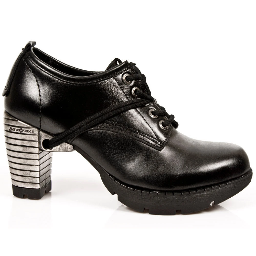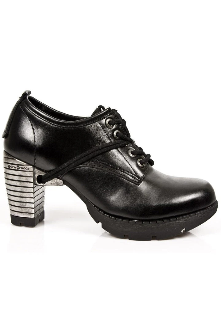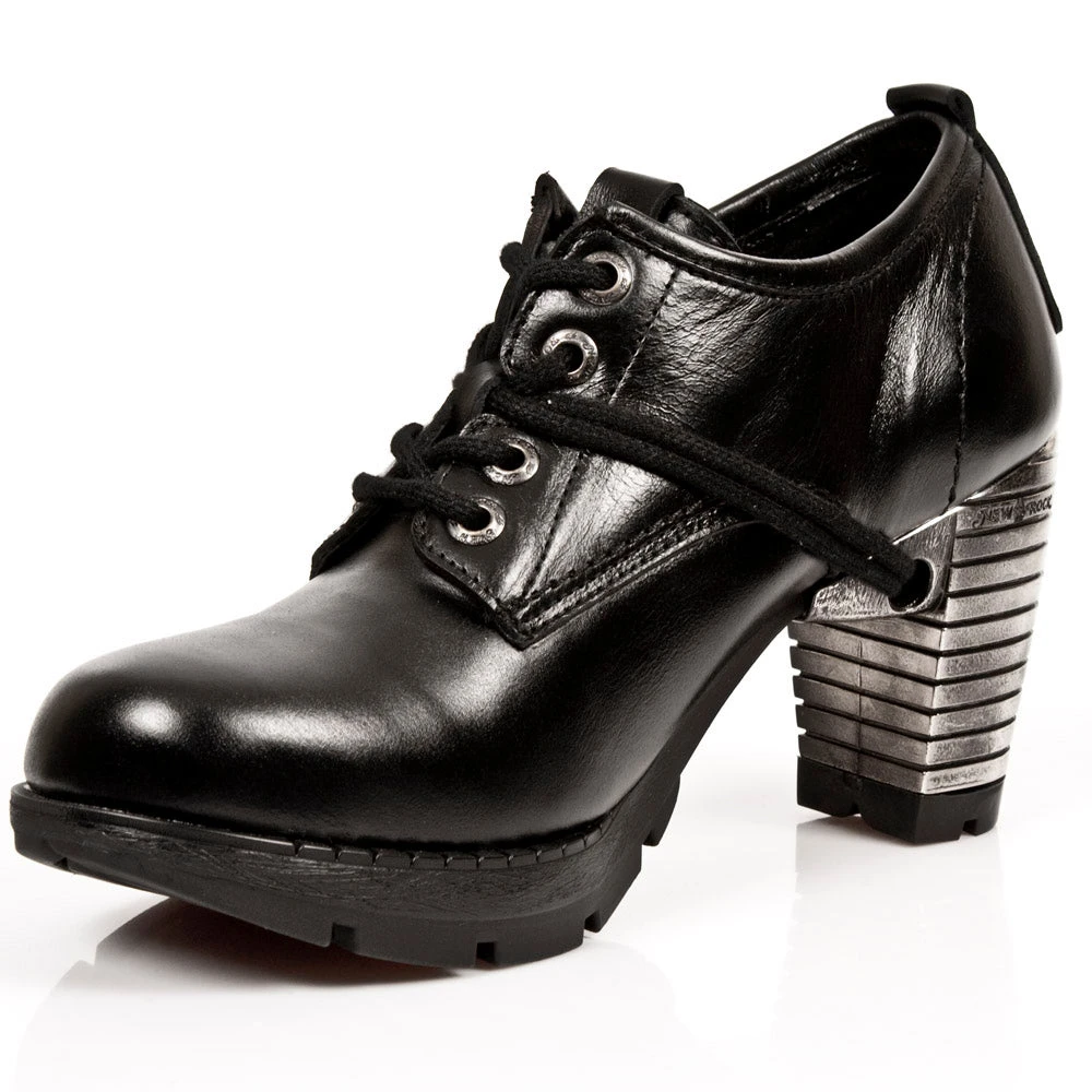 New Rock Black Trailed Heeled Shoes M.TR011-S3. Leather laced shoes with a Steel heel. Part of the Trail Collection.