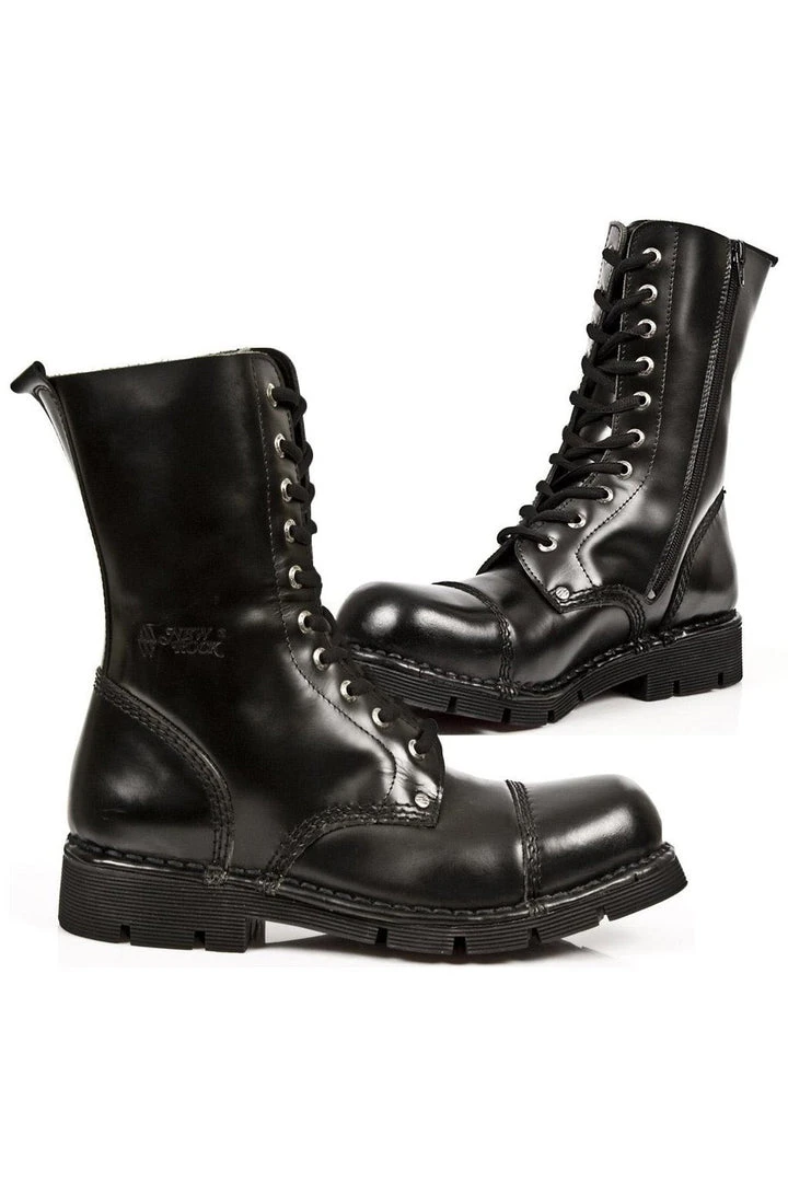 New Rock M.NEWMILI Military Combat Boots M.NEWMILI10-S1. Leather. lace up boots with side zip. Unisex. Part of the New Mili Collection.