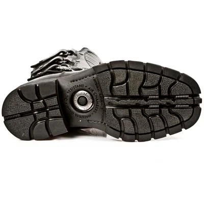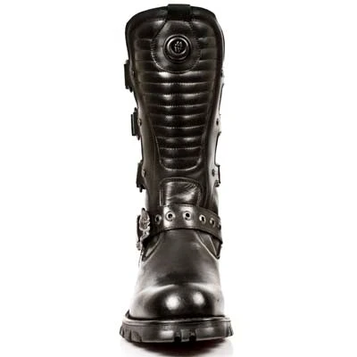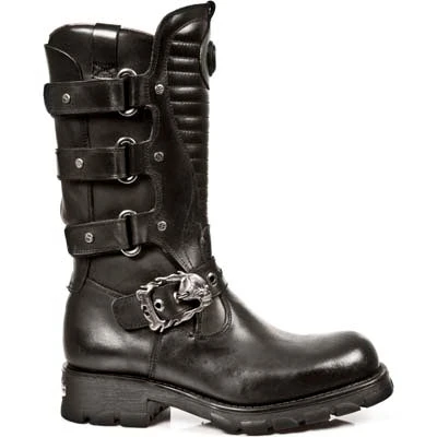 New Rock Motorcycle collection Boots. Leather. Four straps with buckles, one with a metal skull, with side zip.