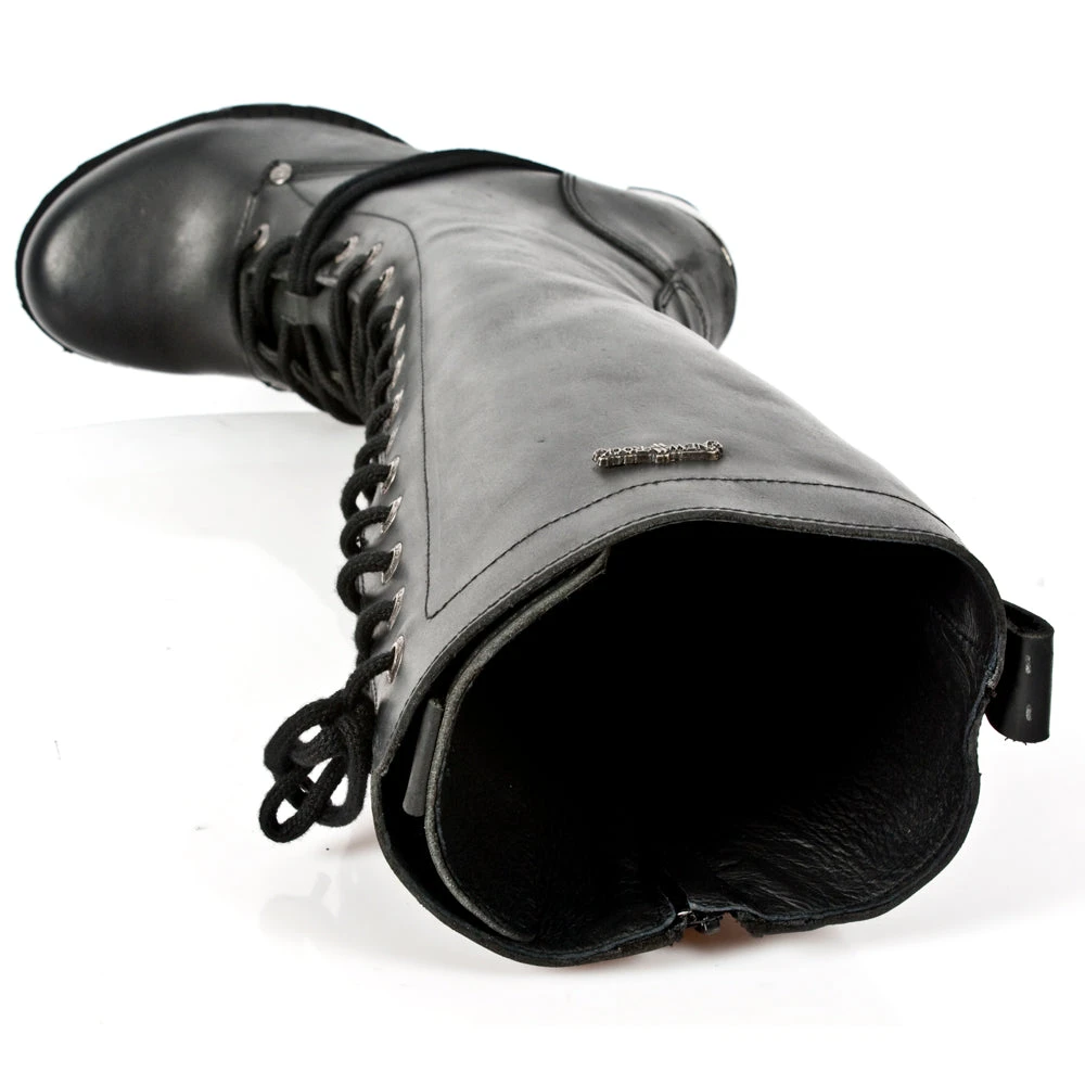 New Rock Tall Laced Ladies Boots M.TR005-S1. Leather. Decorated with metal trail heel. Side Zip. Part of the Trail Collection.