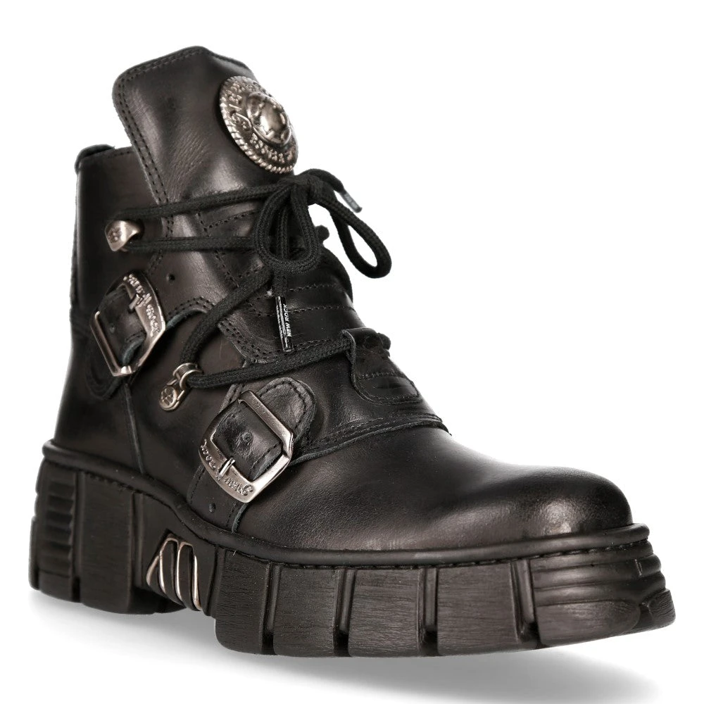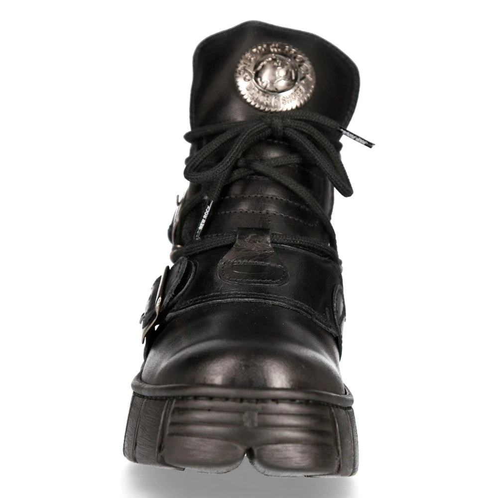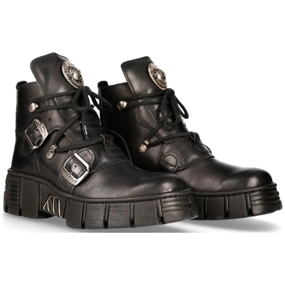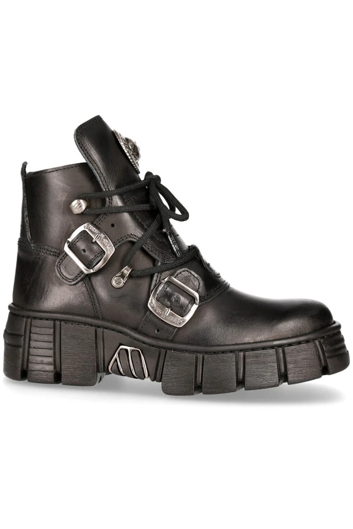 Black New Rock Boots. Laced with 2 adjustable New Rock Buckles. Unisex.