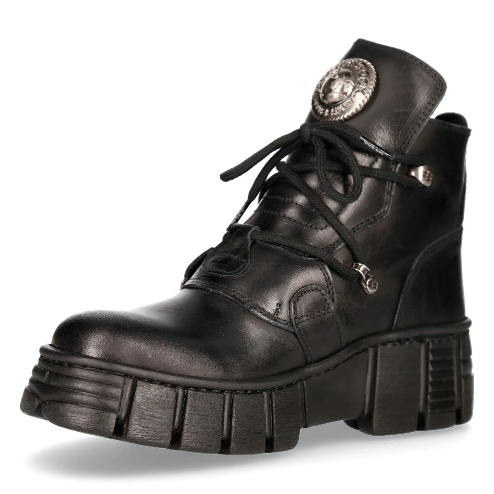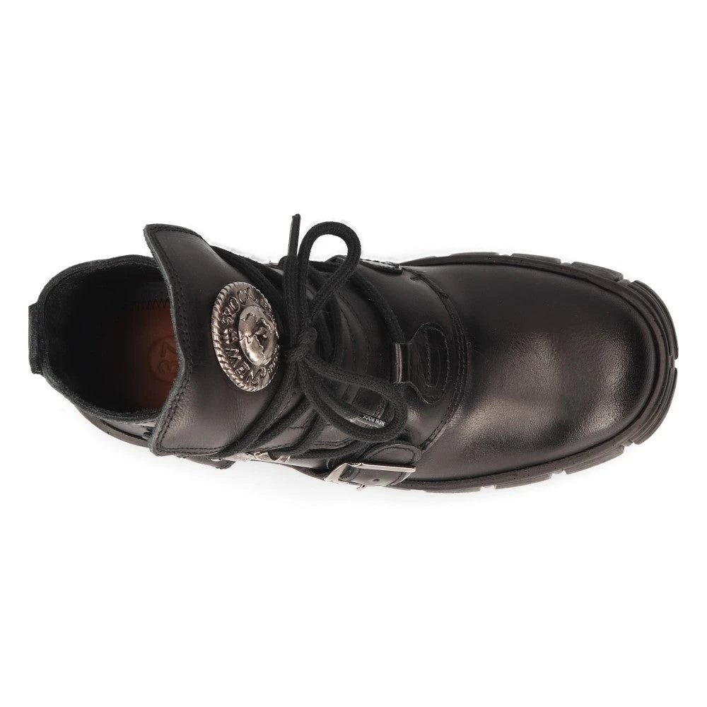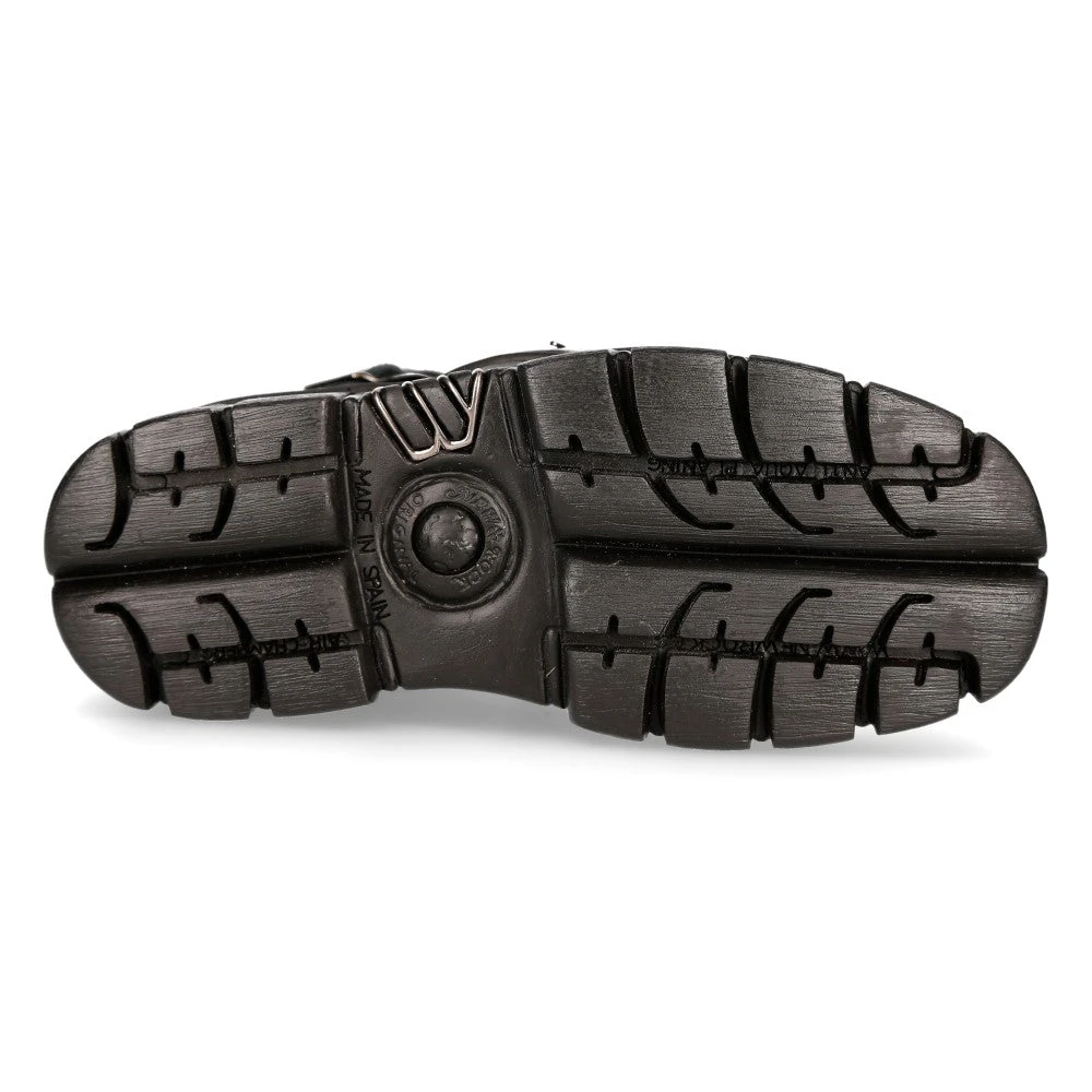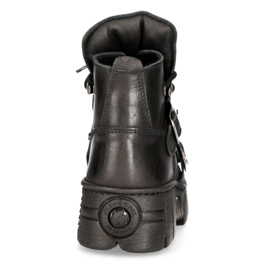 Black New Rock Boots. Laced with 2 adjustable New Rock Buckles. Unisex.