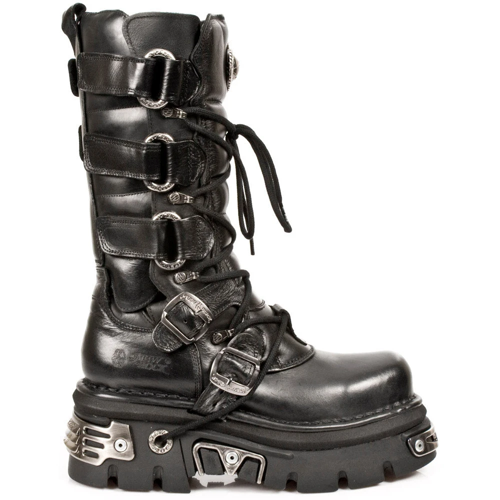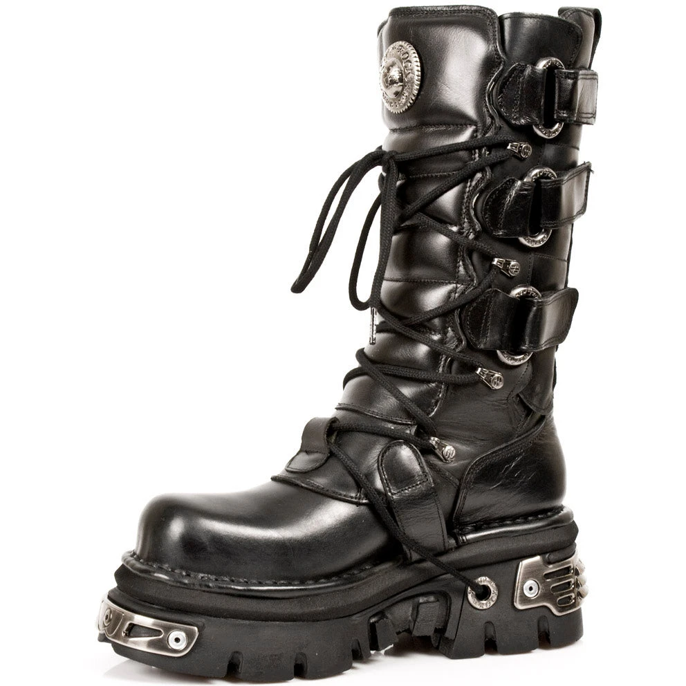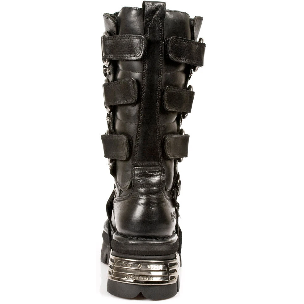 New Rock Boots. Black High Calf Boots with Velcro Closure – M.474-S1