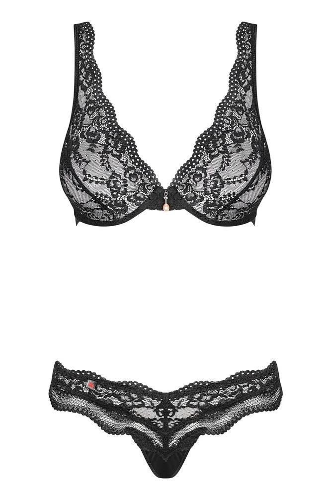 Show off being seductive and elegant! This set is perfect for spicing up every day and special occasions in a sexy and elegant way. The soft, delicate lace clings to the feminine curves and shows off sexy and confident style. The bra also stands out because of its sparkly rhinestone detail at the front. It has a hook fastener at the back as well.