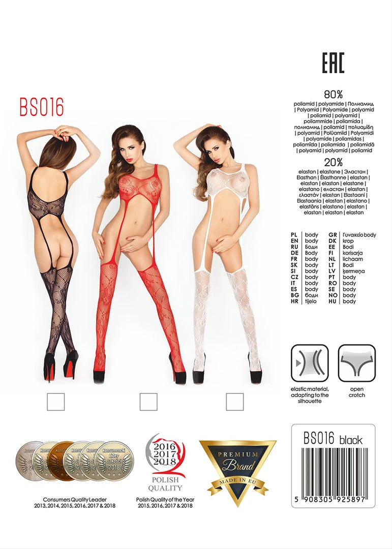 Sexy bodystocking that perfectly fits the figure, emphasizing the feminine shapes. Very good quality bodystocking. Available in one universal size S-L.