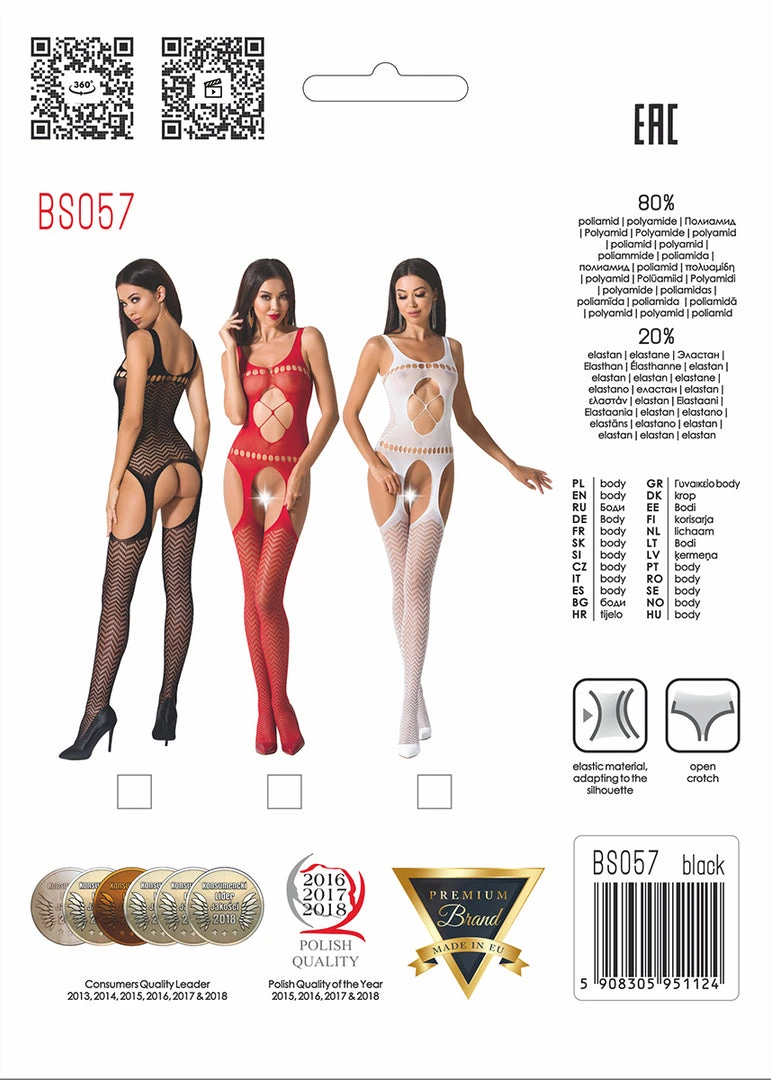 Sexy bodystocking that perfectly fits the figure, emphasizing the feminine shapes. Very good quality bodystocking. Available in one universal size, S-L.