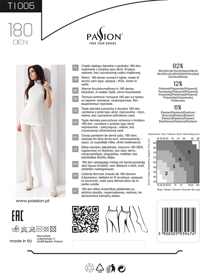 Warm women’s tights, 180 denier, made of acrylic type yarn – opaque – opaque, matte, without marked panties.