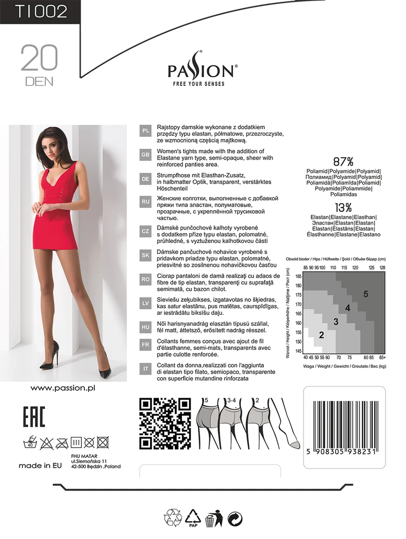Women’s tights made with the addition of elastane yarn, semi-matte, transparent, with a reinforced panties part.