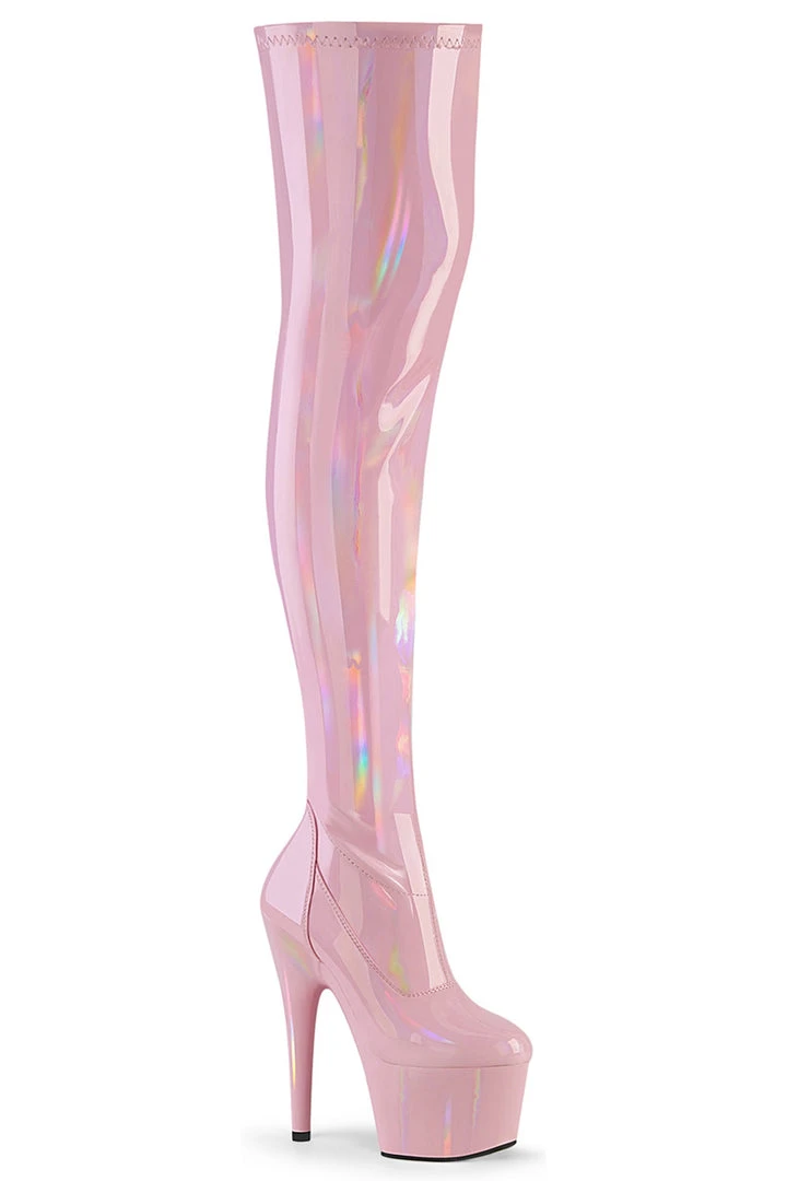 Pleaser ADORE-3000HWR Pink Stretch Holo Boots.