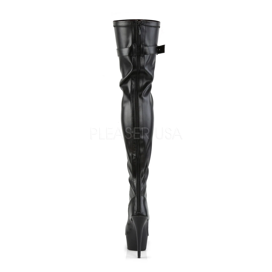 Pleaser Black Stretch Faux Leather with a Black Matte finish. DELIGHT-3025 Boots.
