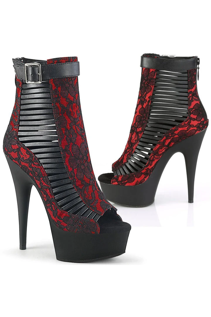 Pleaser Black Faux Leather, Red Fabric DELIGHT-600-27LC Boots.