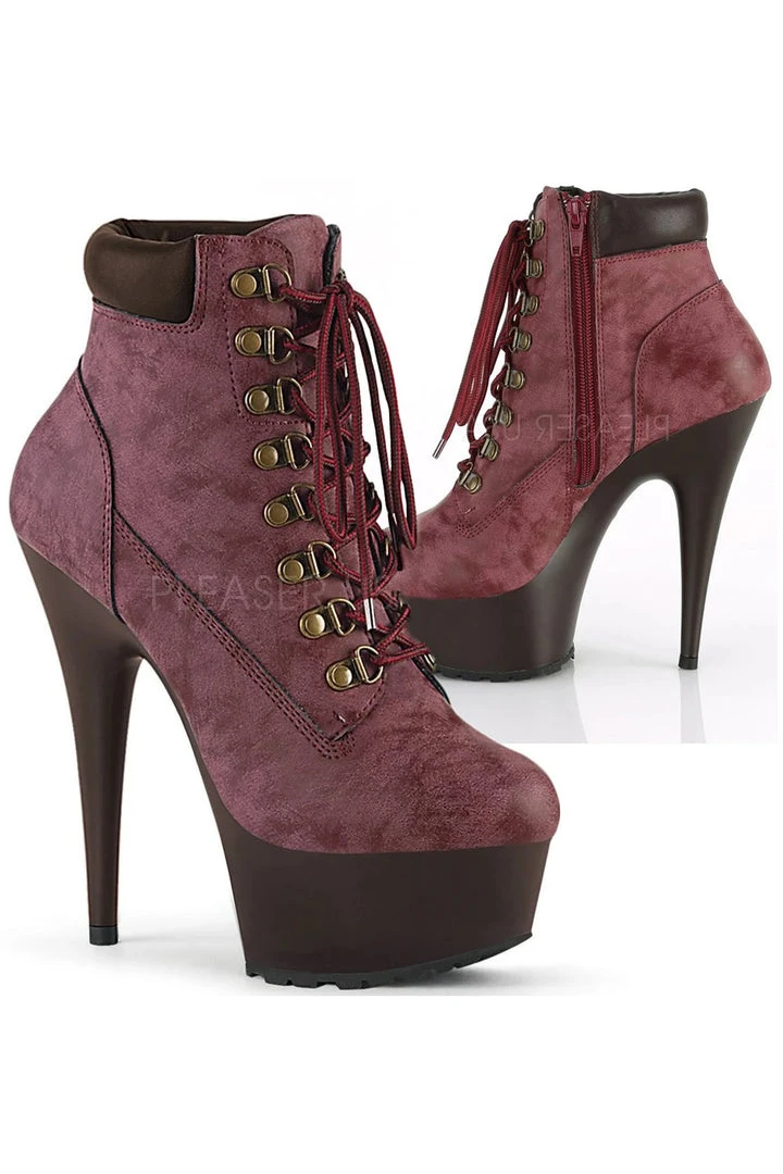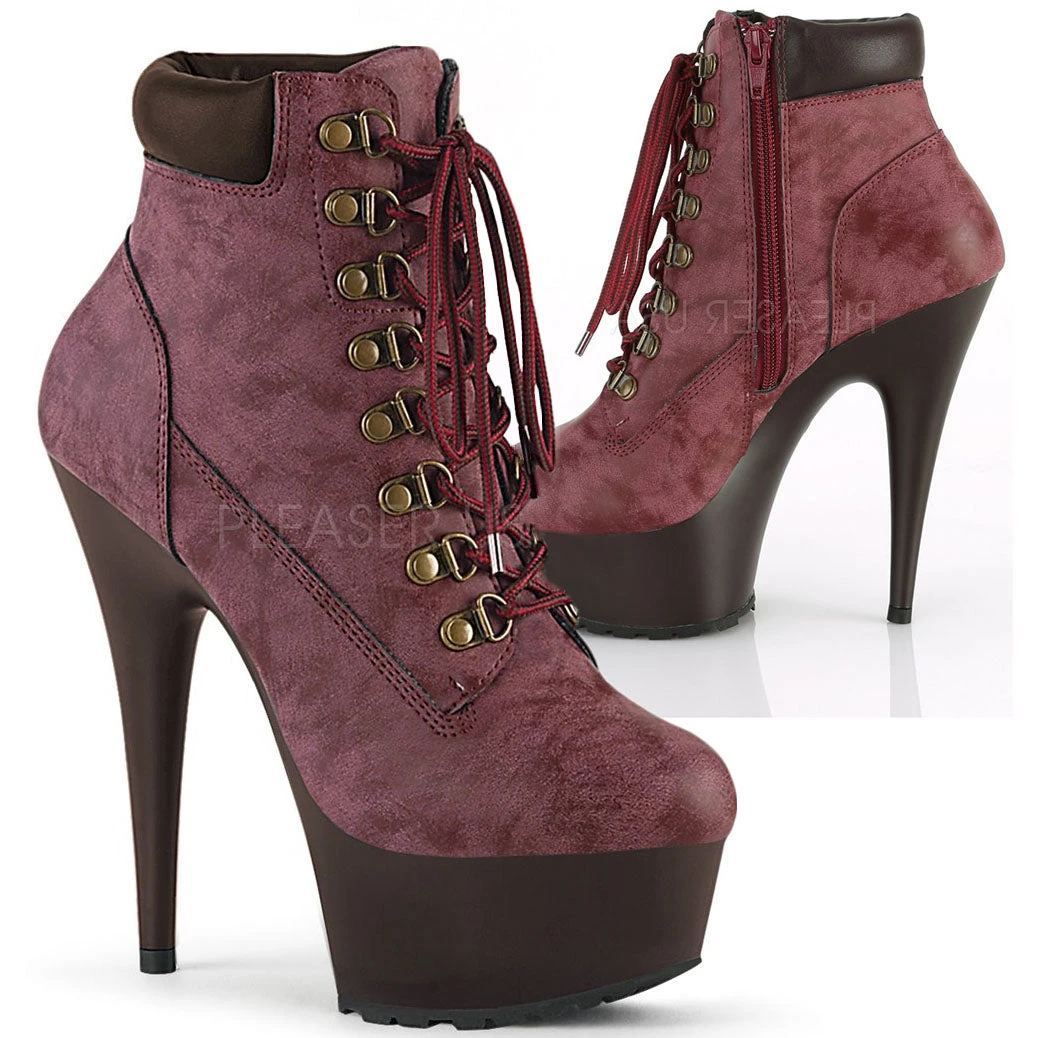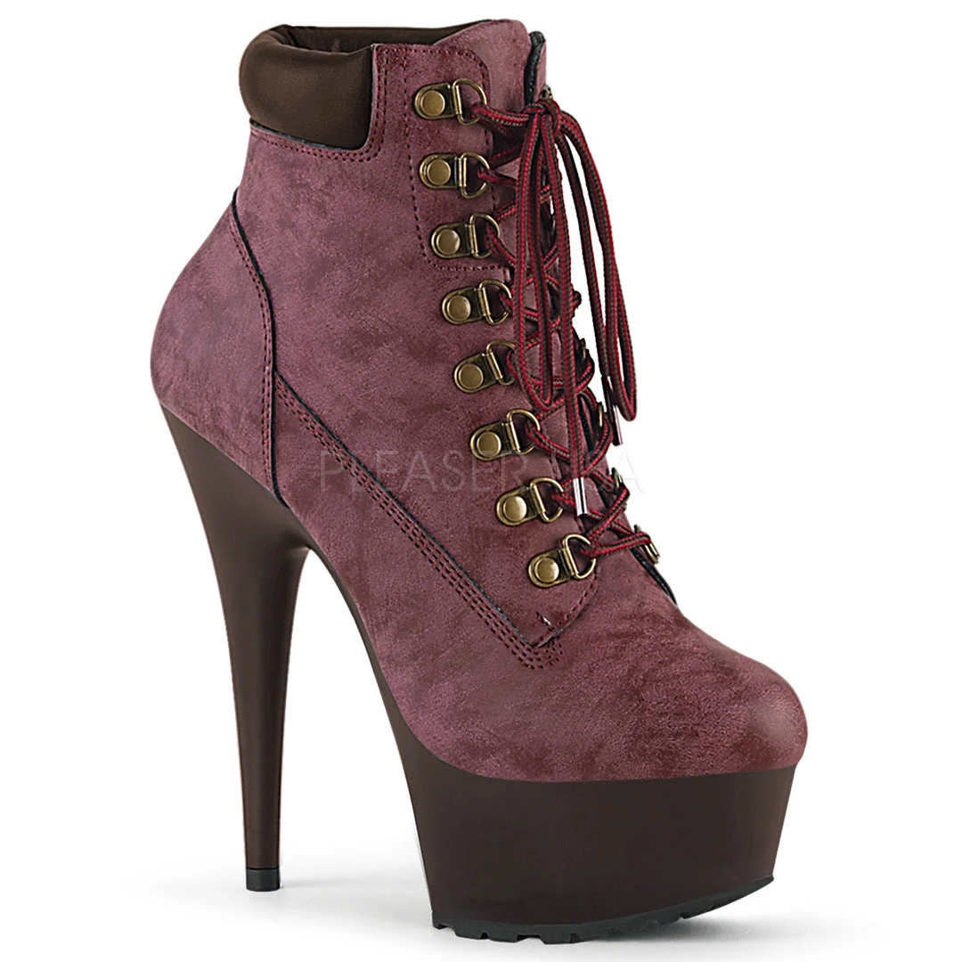 Pleaser Burgundy Nubuck Faux Leather Ankle Boots DELIGHT-600TL-02.