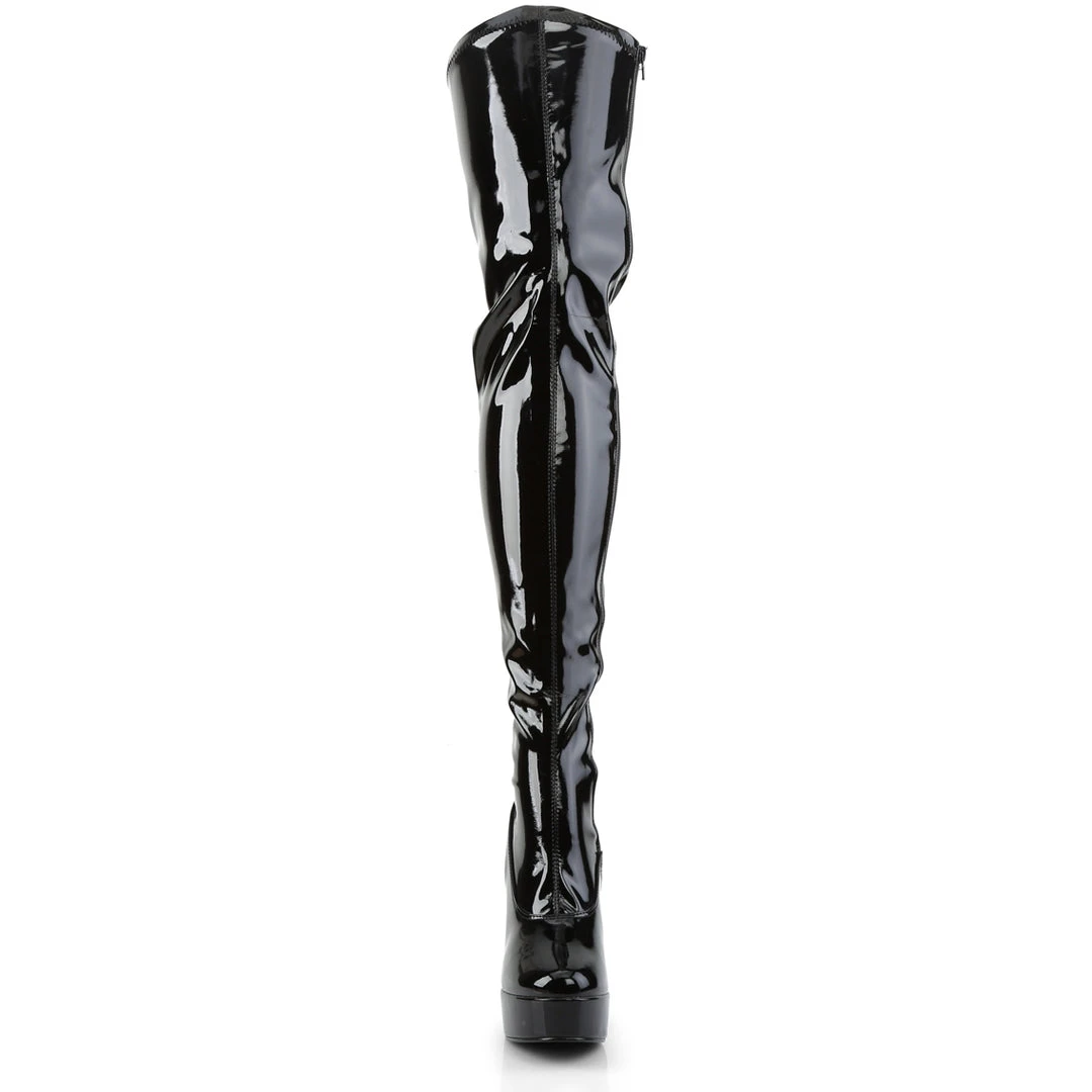 Pleaser Electra 3000Z PVC thigh high boots with five inch heel and platform sole.