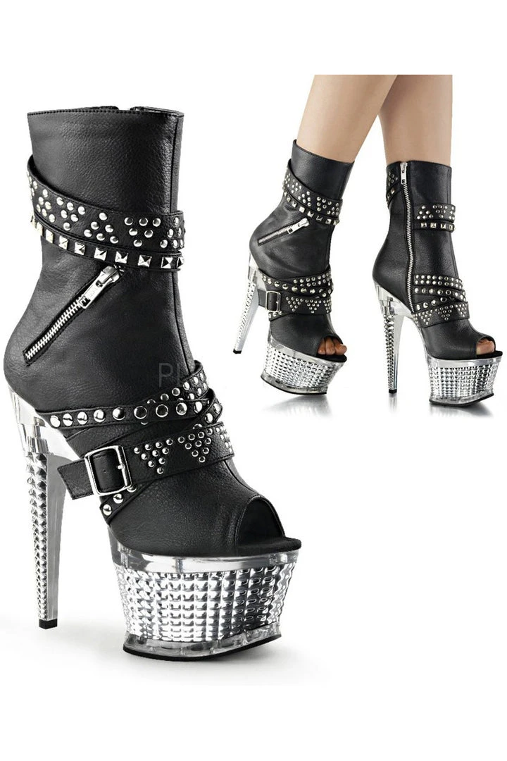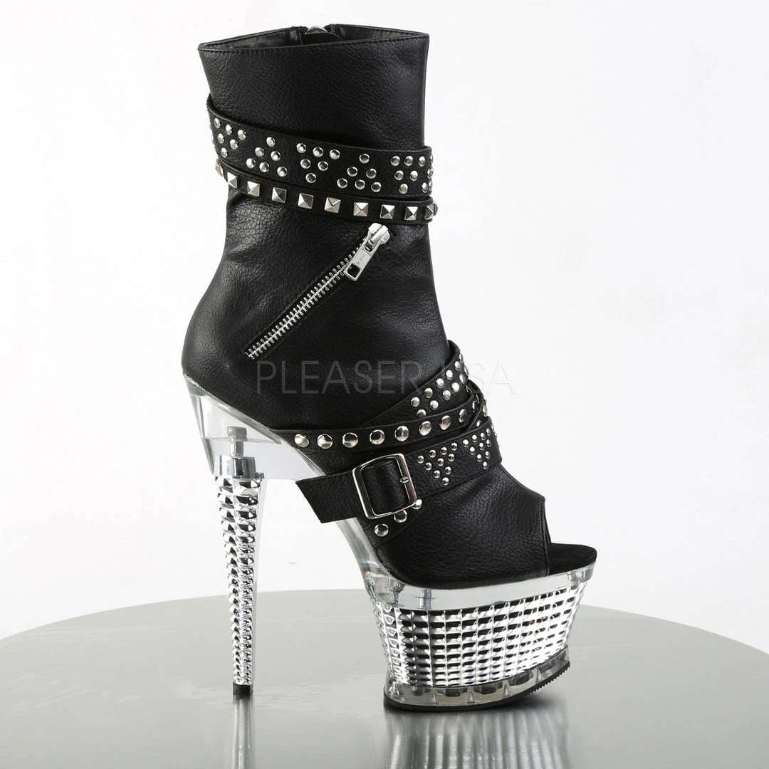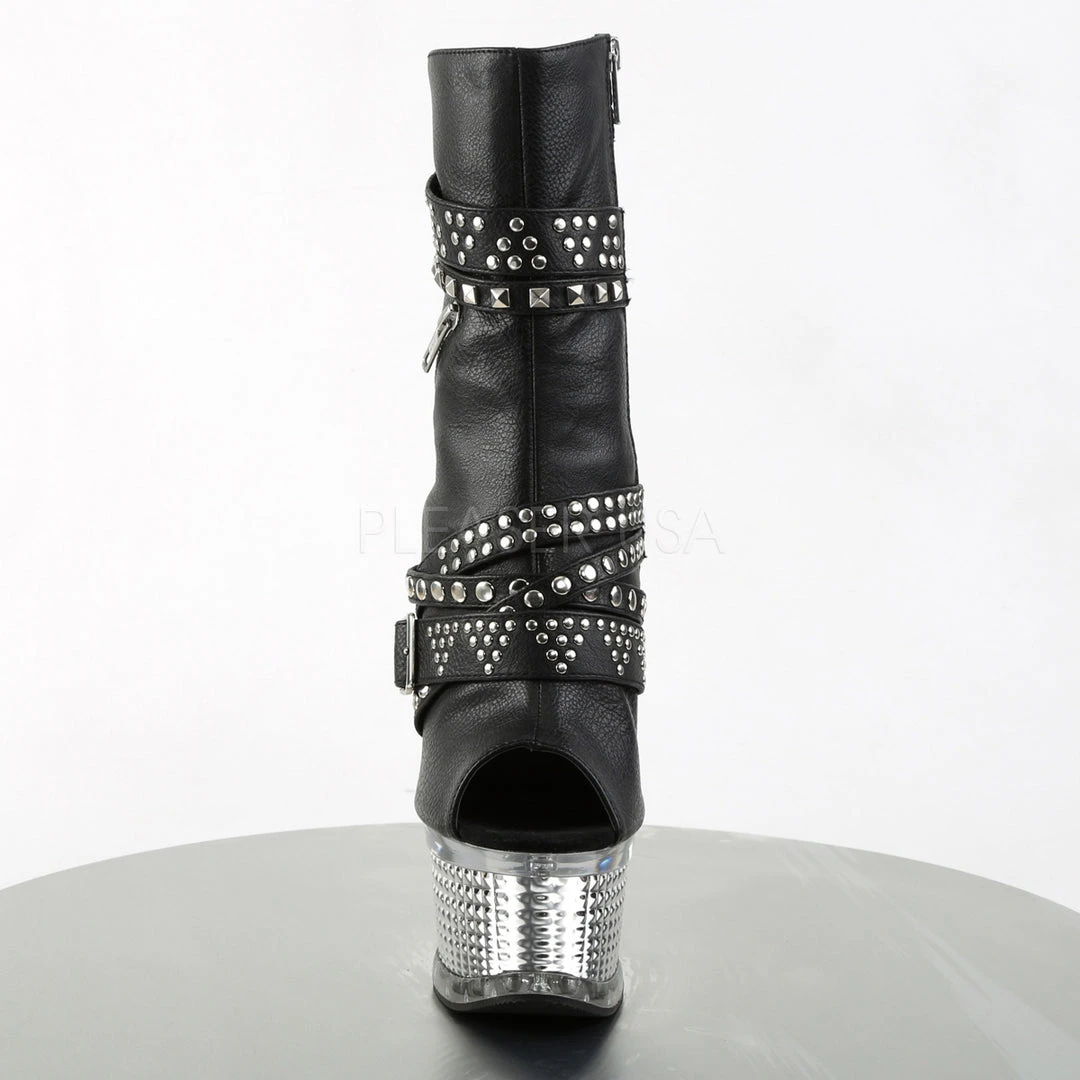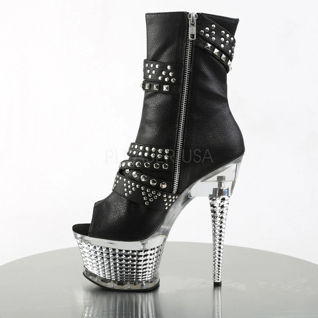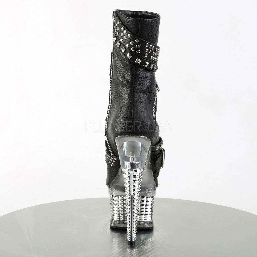 Pleaser Black Faux Leather with Silver Chrome ILLUSION-1015 Boots.