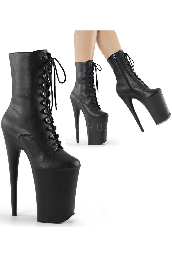 Pleaser Black Faux Leather in a Matte Finish INFINITY-1020 Boots.
