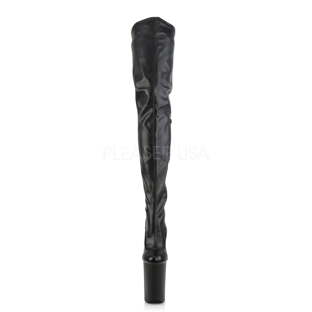 Pleaser Ladies Black Stretch Faux Leather in a Matte Finish INFINITY-4000 Boots.