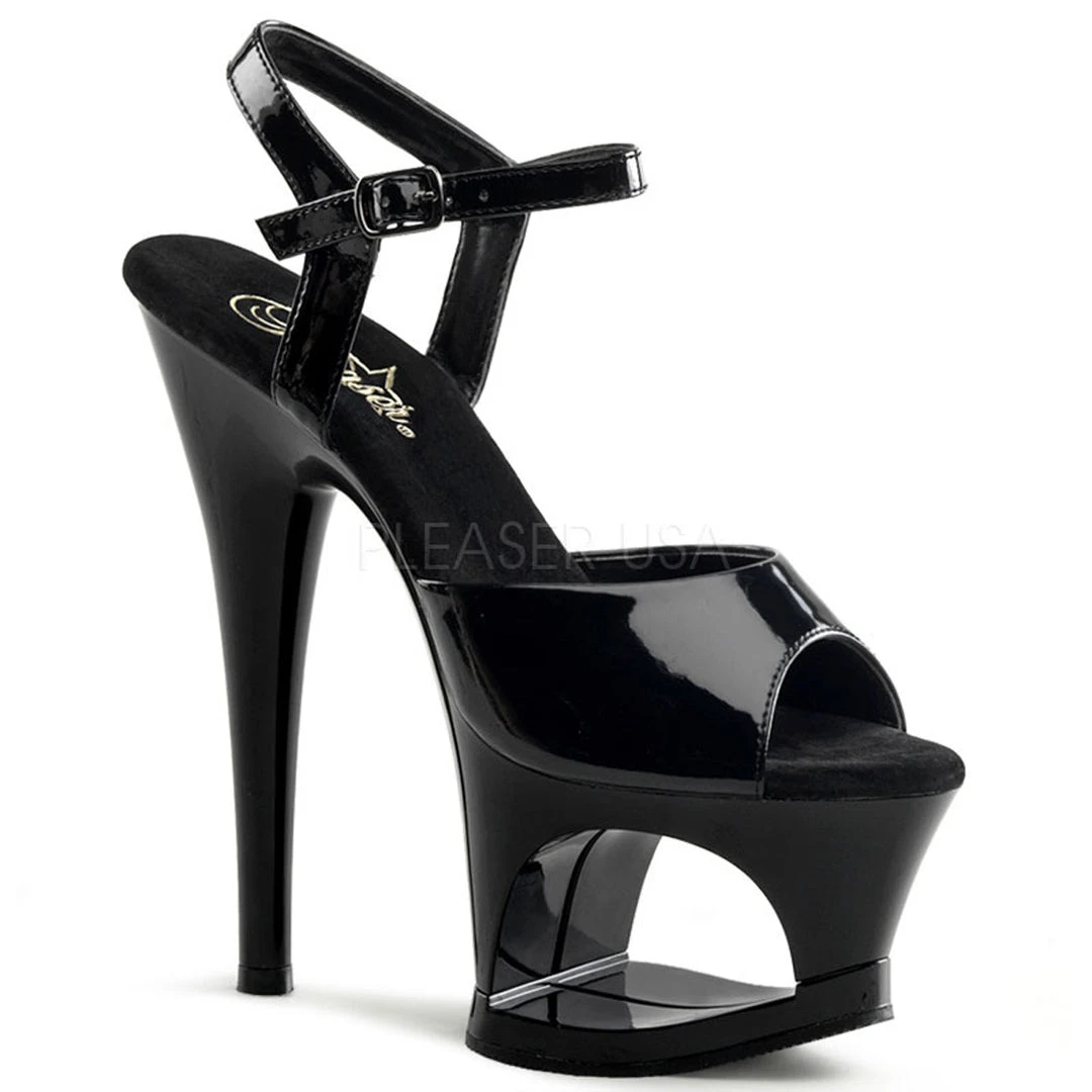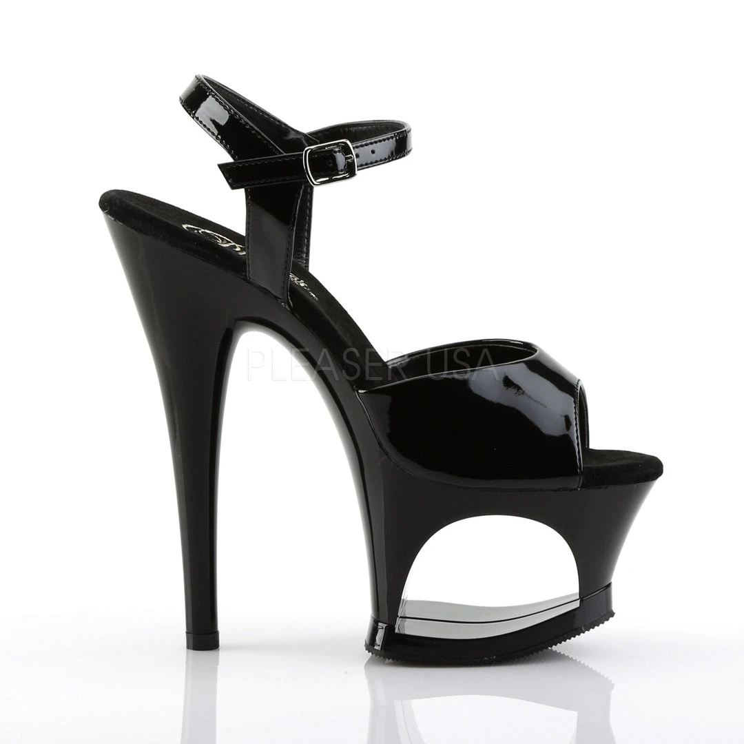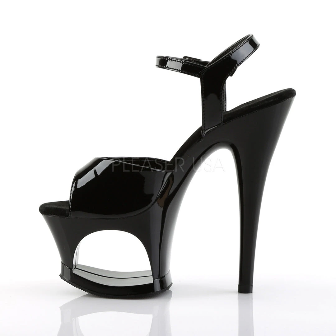 Pleaser Black Patent PVC with Black Heel MOON-709 Shoes.