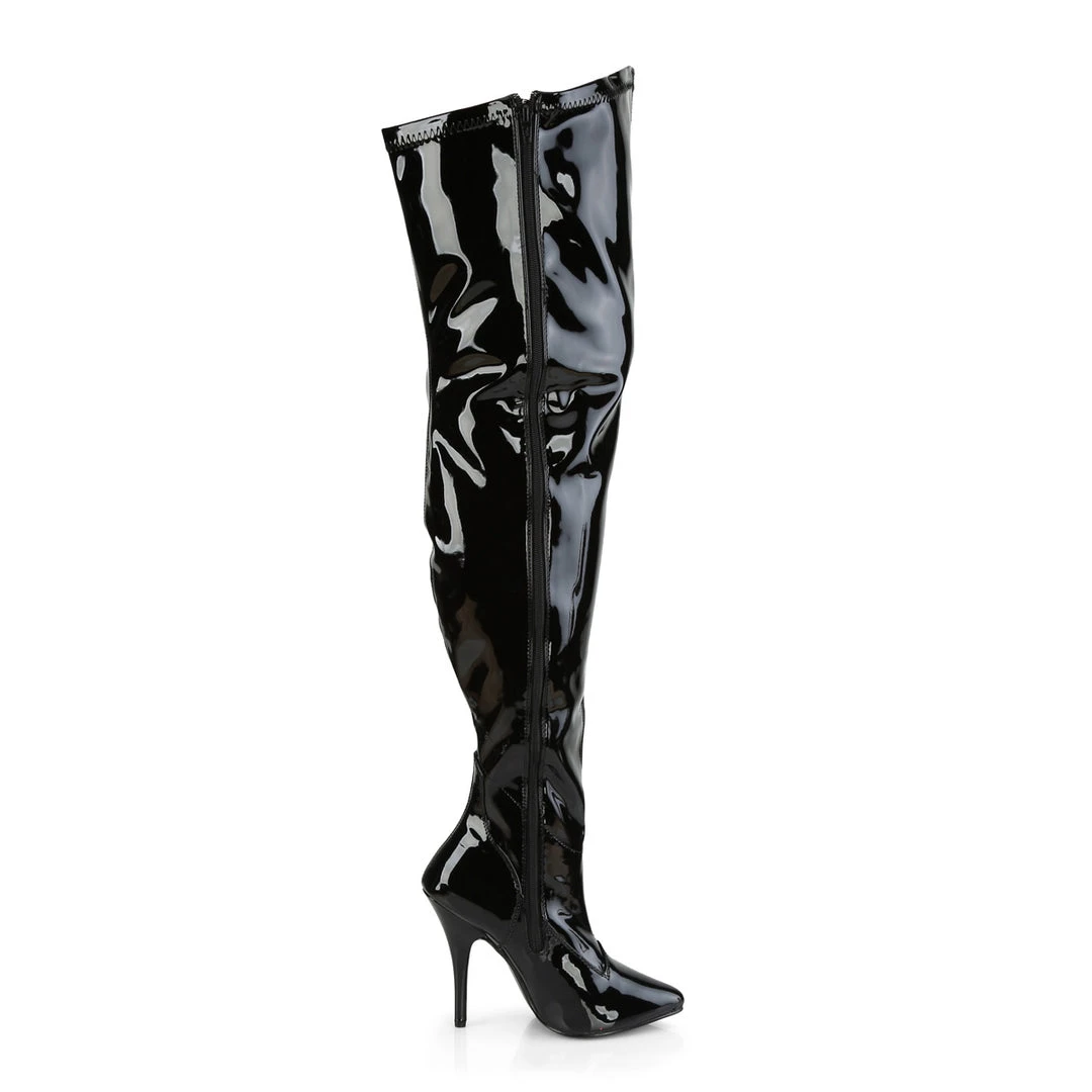Pleaser Pink Label Black Stretch Patent PVC SEDUCE-3000WC Boots.