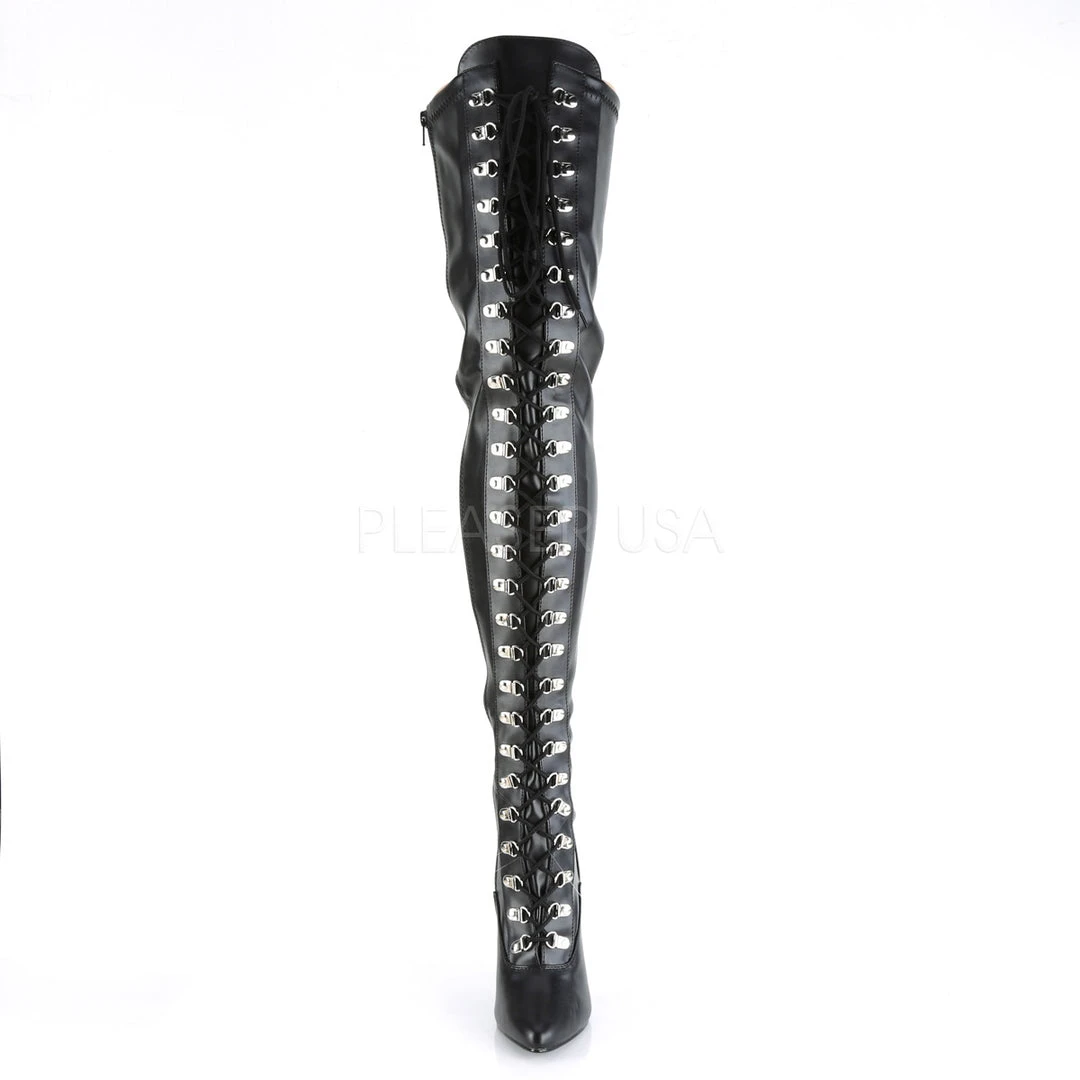 5″ (12.7cm) Heel D-Ring Stretch Thigh Boot, Full Inner Side Zipper.
