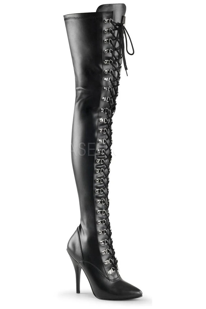 Pleaser Black Stretch Faux Leather SEDUCE-3024 Boots.
