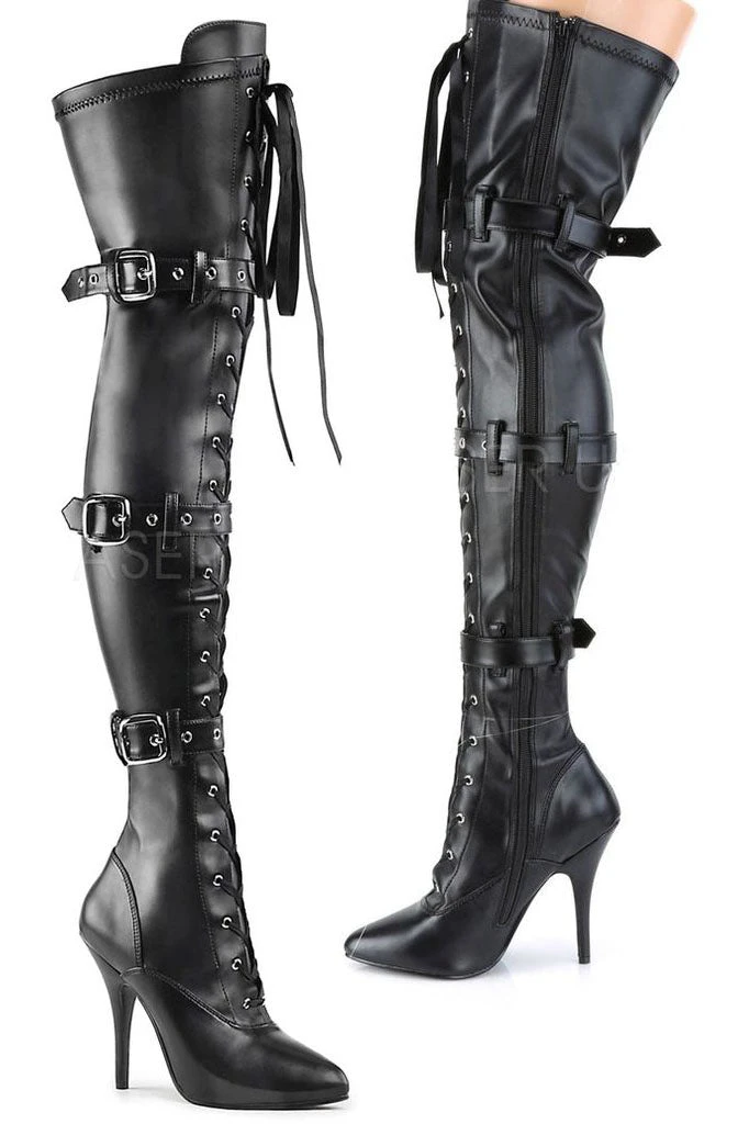 Pleaser Black Stretch Faux Leather Boots SEDUCE-3028.