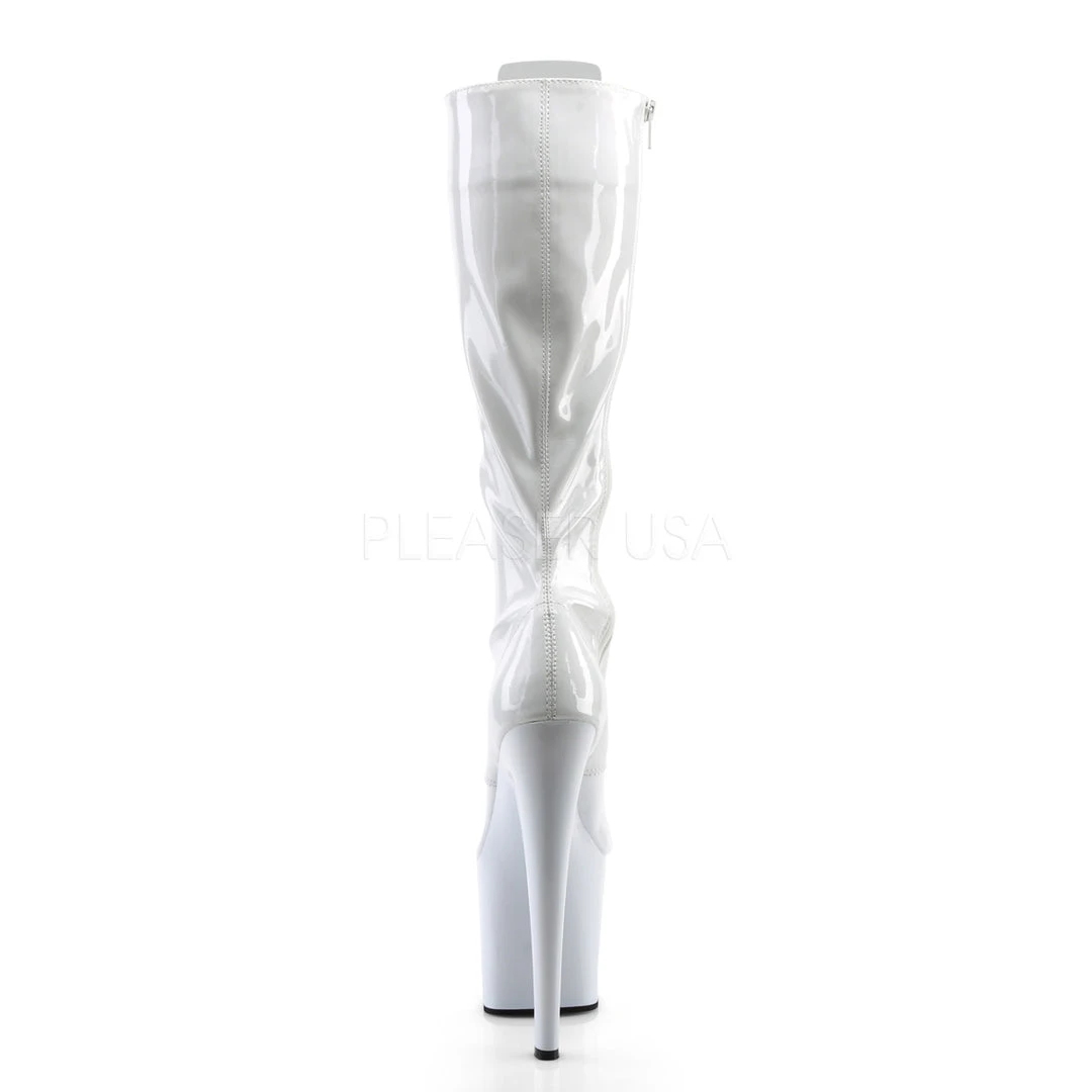Pleaser Ladies White Stretch Patent TABOO-2023 Boots.