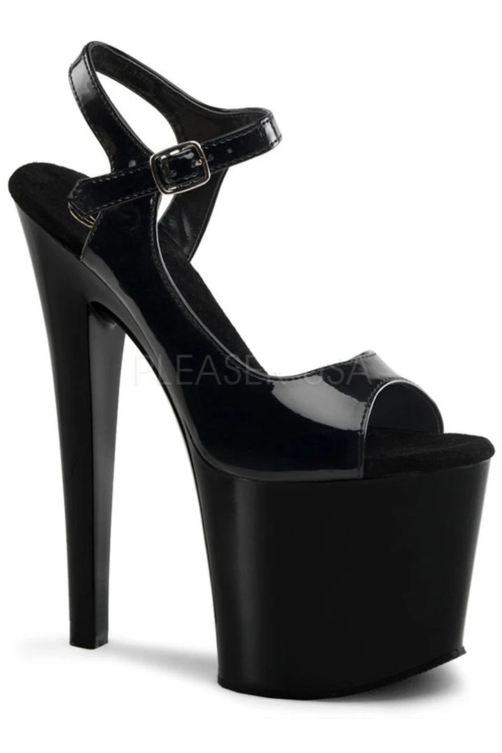 Pleaser Ladies Black Patent PVC TABOO-714 Shoes.