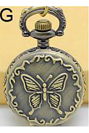 Miniature Design Necklace Victorian Watch Style on Chain – Steampunk Pocket Watch with a Closed Case featuring a butterfly Design.