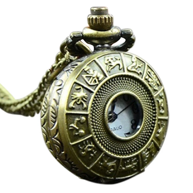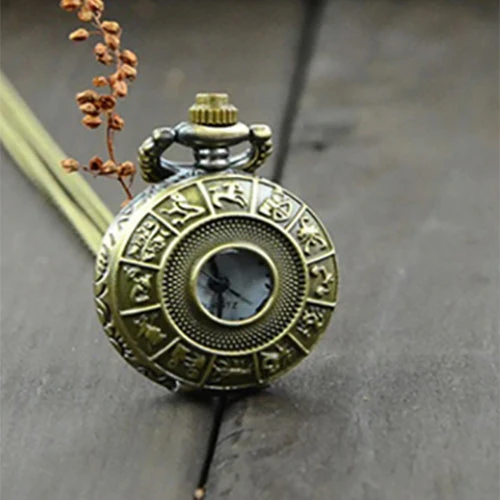 Miniature Zodiac Steampunk Pocket Watch on Necklace Chain.