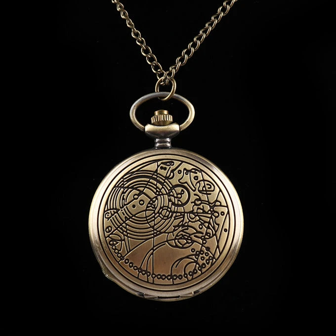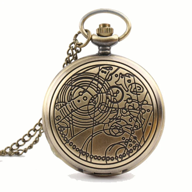 Find Steampunk Pocket Watch. Antique Bronze Effect Steampunk Pocketwatch with geometric alien symbols design on the front casing and floral pattern on the back.