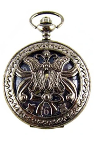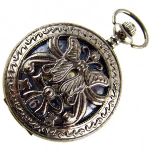 Clockwork Gunmetal Effect Steampunk Pocket Watch in Butterfly design with Mechanical Movement.