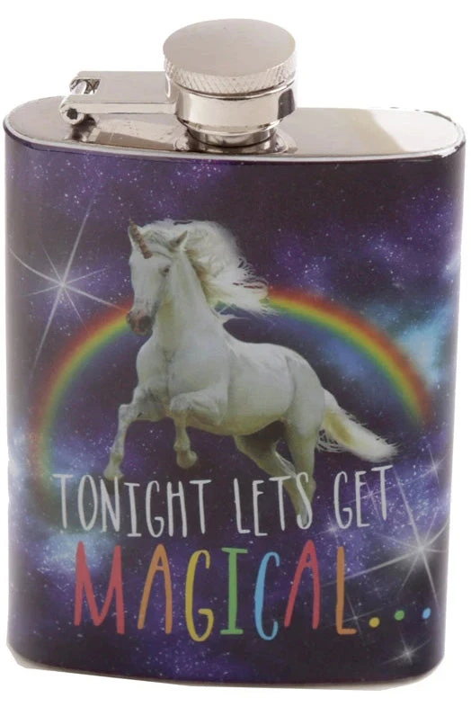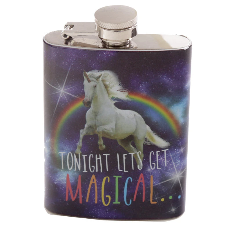 This great hip flask in 100% Stainless steel has a Cosmic Unicorn design on the front.