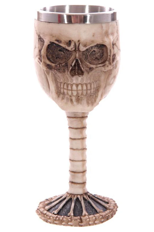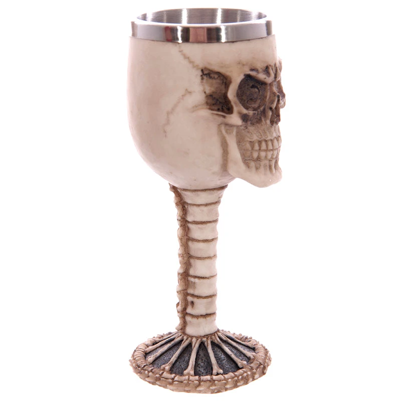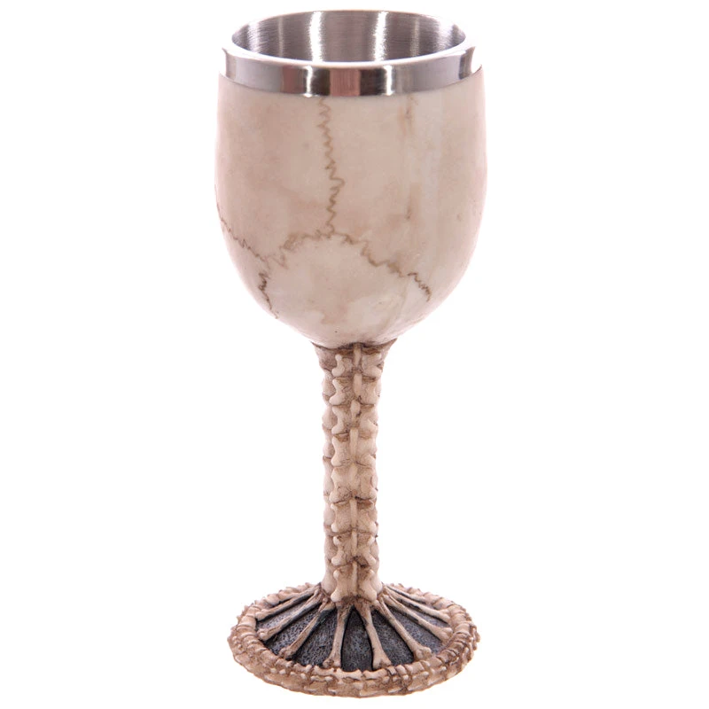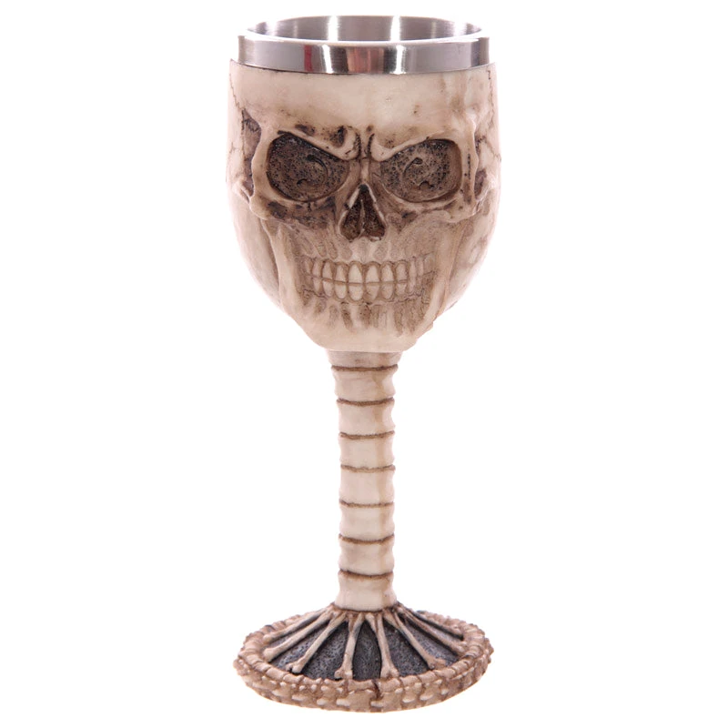 Striking Skull Goblet with spine stem and bones radiating around the base. Stainless steel lining.