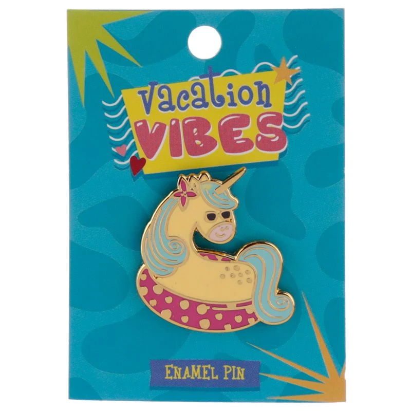 Collectable Vacation Vibes Unicorn Enamel Pin Badge.