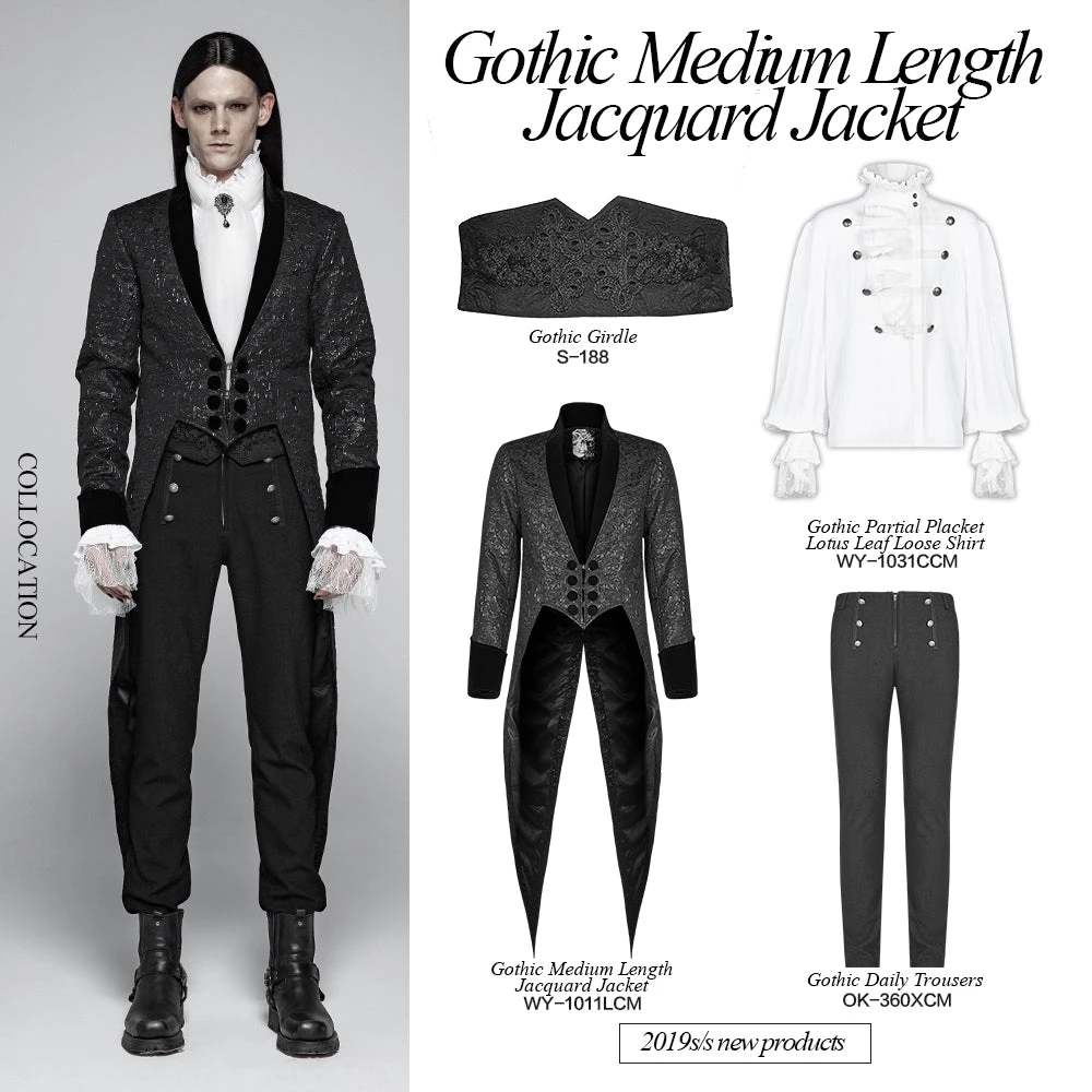 Gothic Medium Length Jacquard Jacket Performance Concert Coat.