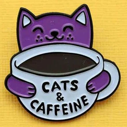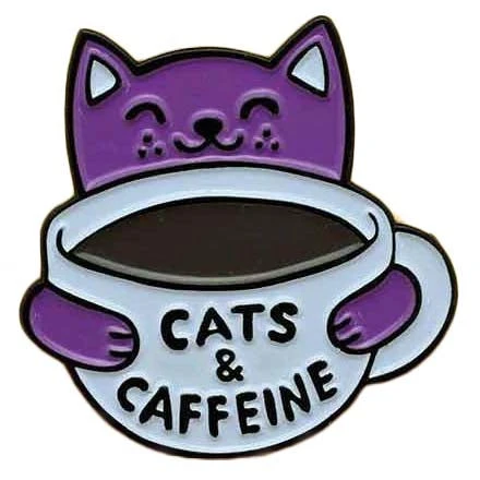 Punky Pins Cats and Caffeine Enamel Pin.
