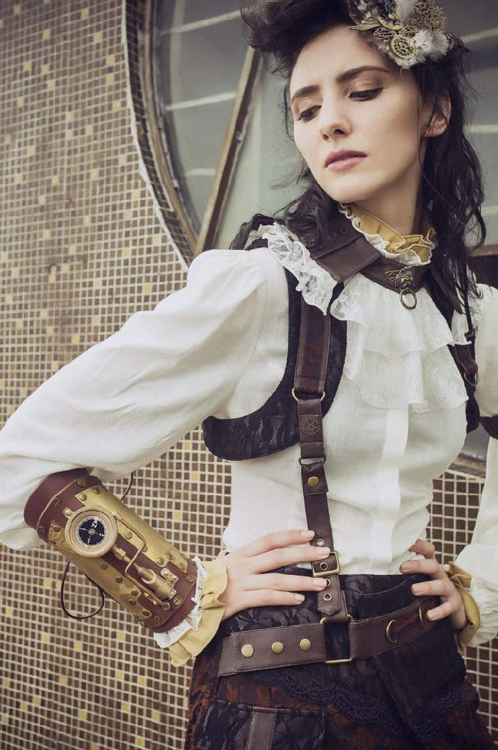 Steampunk Lace Up Uppper Arm Gauntlet from Red Queens Black Legion. Could also be worn lower on the wrist section.