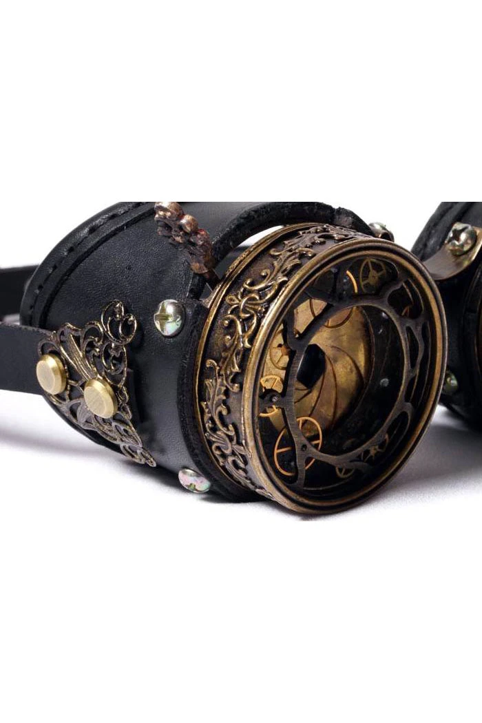 These lovely steampunk goggles from Red Queens Black Legion come fabulously boxed in a beautiful metallic bronze box and are luxuriously padded on the inside to keep these little beauties safe! These Absolutely fantastic quality steampunk goggles are fashioned from black faux leather and have elegant ornate filigree detailing.