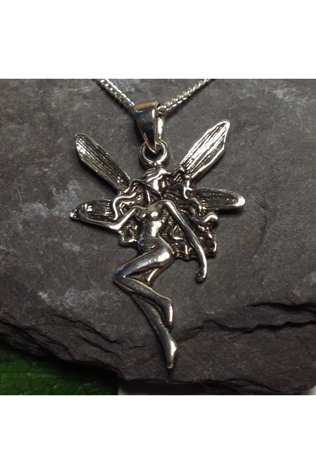 Seventh Sense 925 Sterling Silver Art Deco Style Fairy Pendant.
