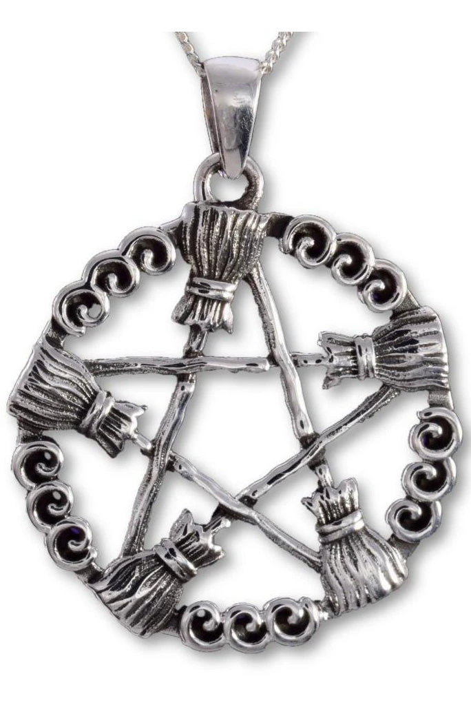 Solid Silver Besom pentagram pendant – A pentagram formed of broomsticks with decorative circle surround. (Chain not included).